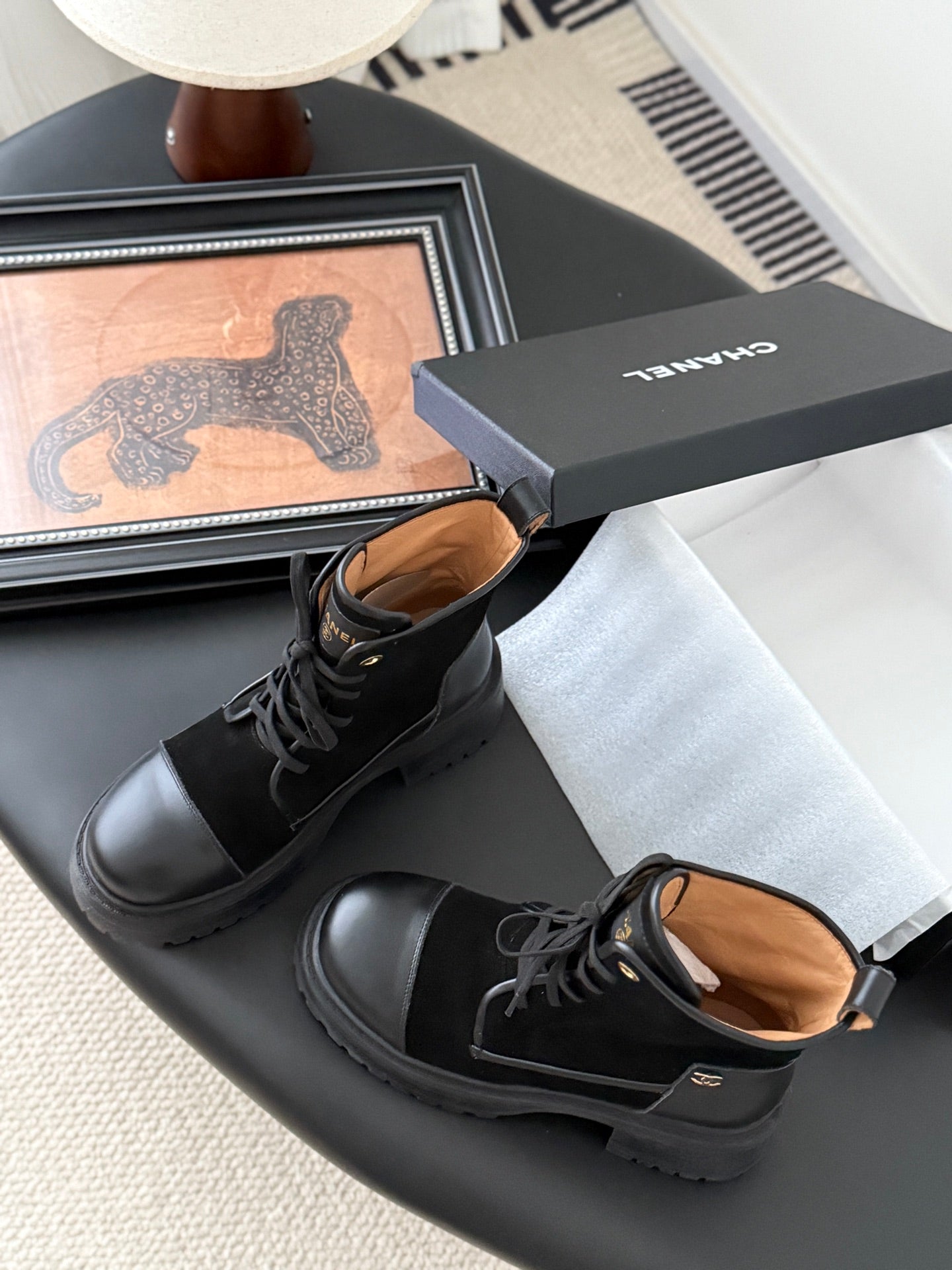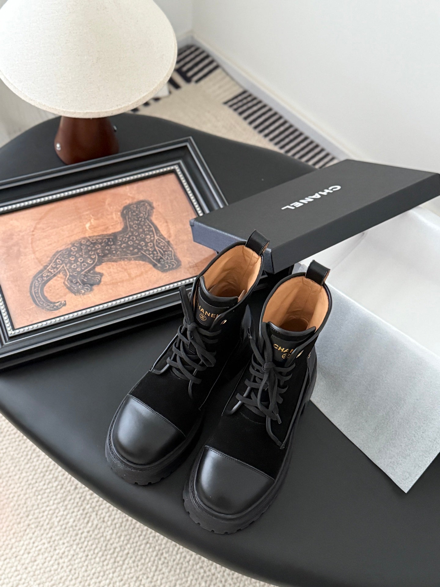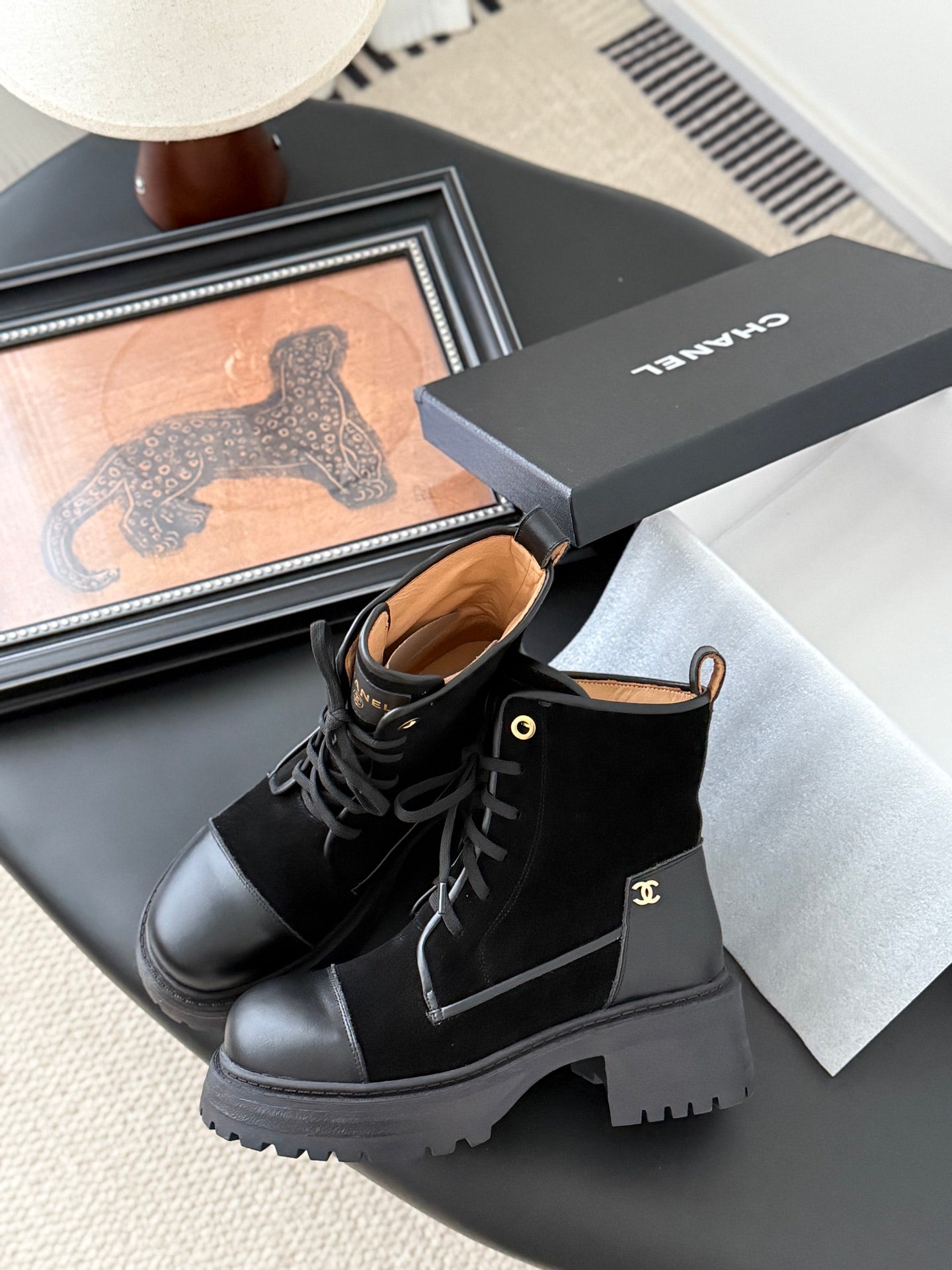 Chanel Boot 25 Beige mix Black Cowhide Suede 175368