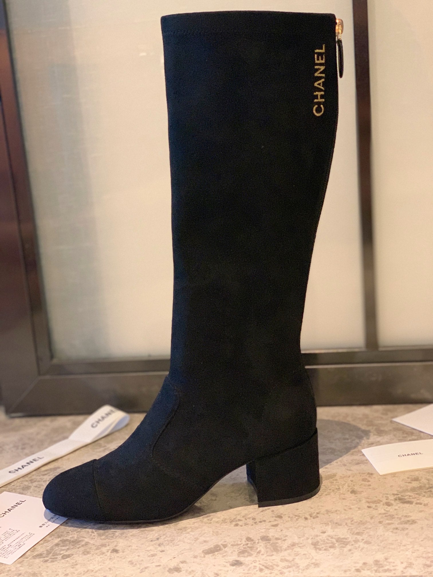 CC High Boots 50mm In Coffee Black Suede And Lycra Fabric 940062