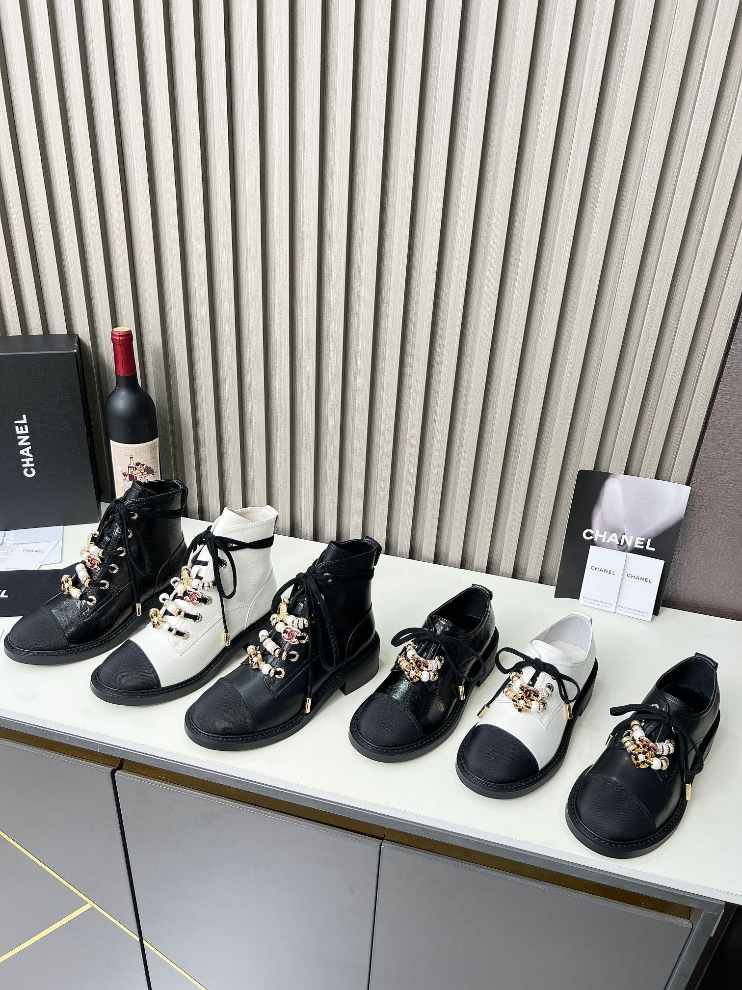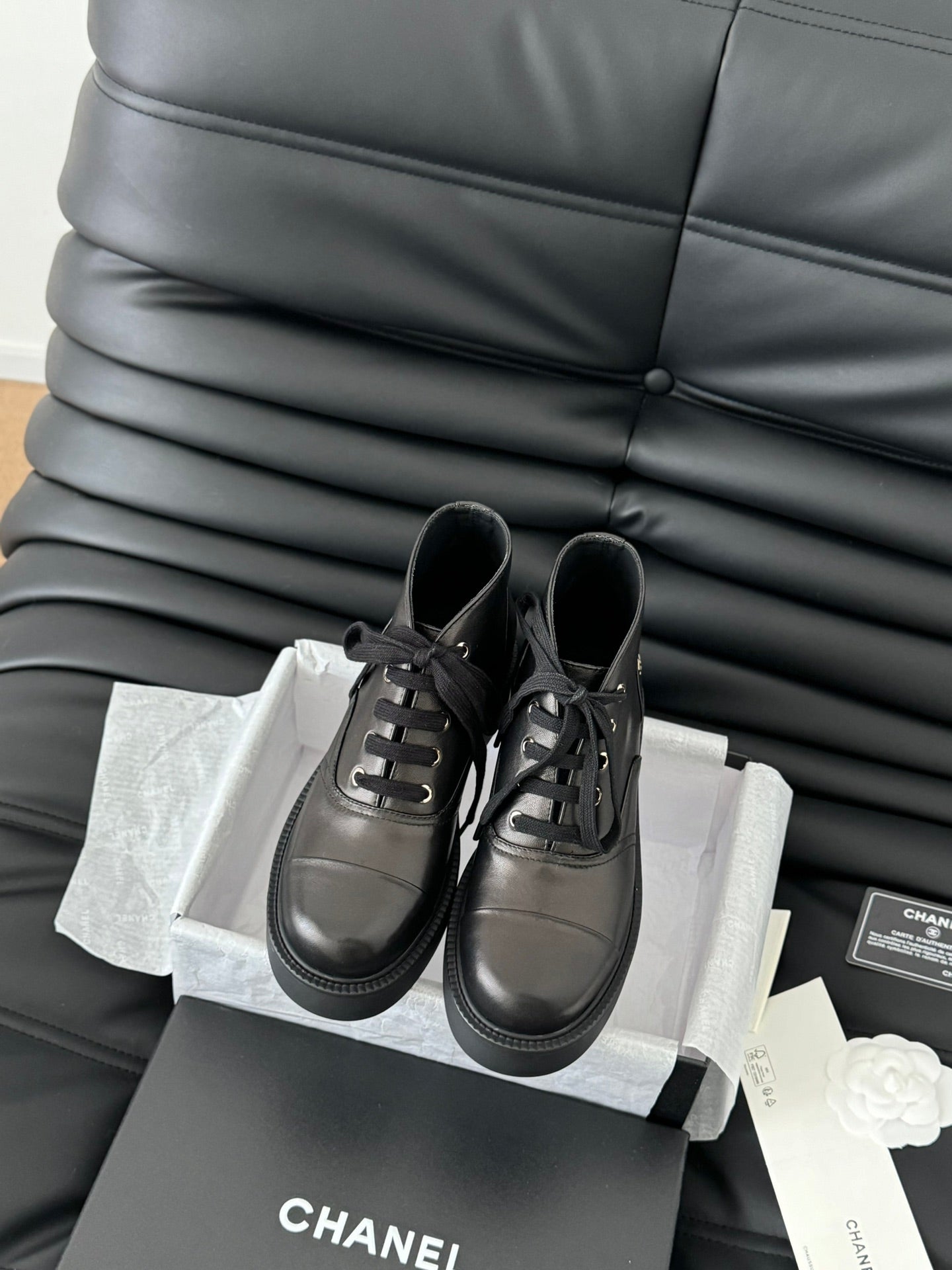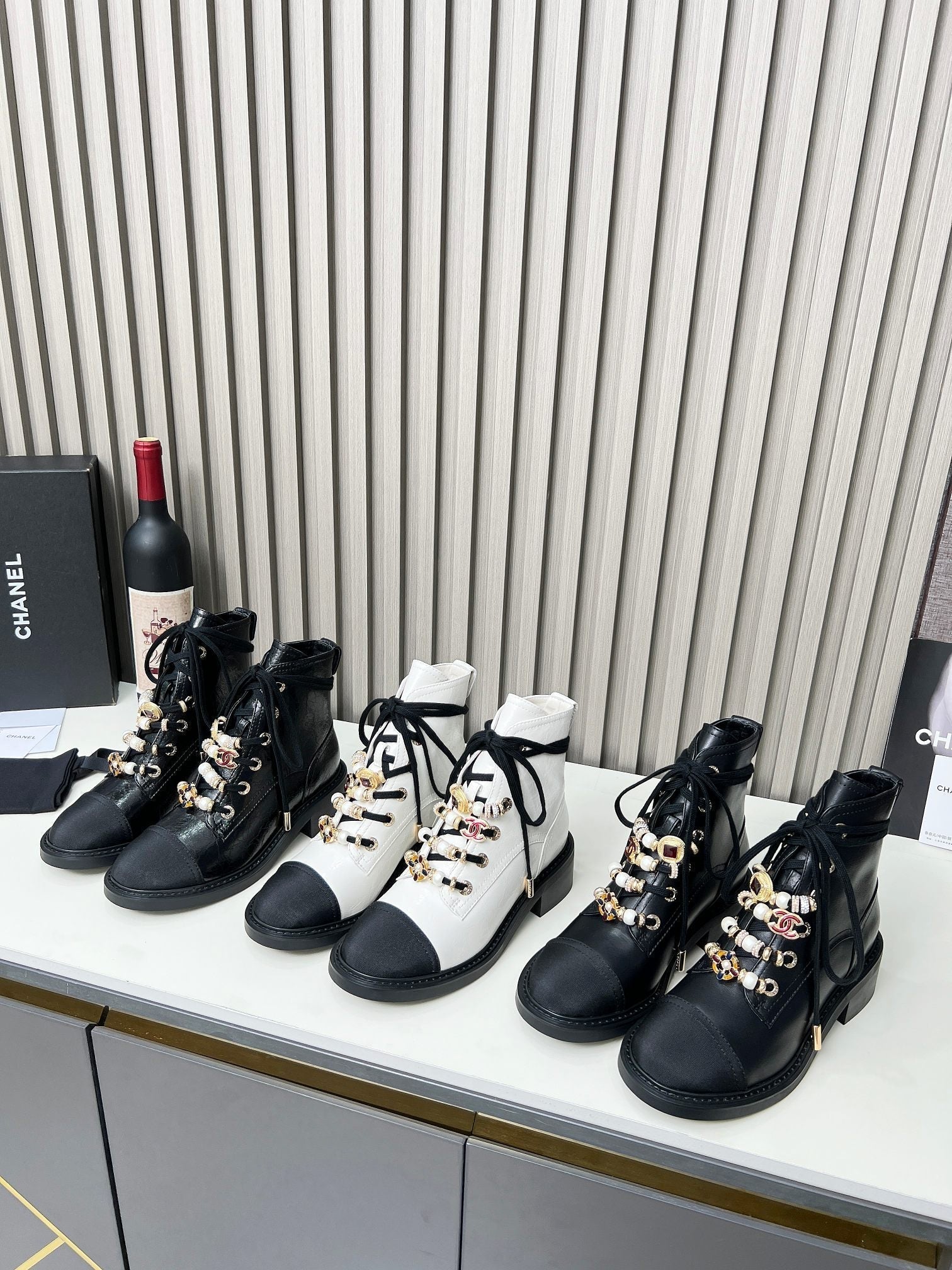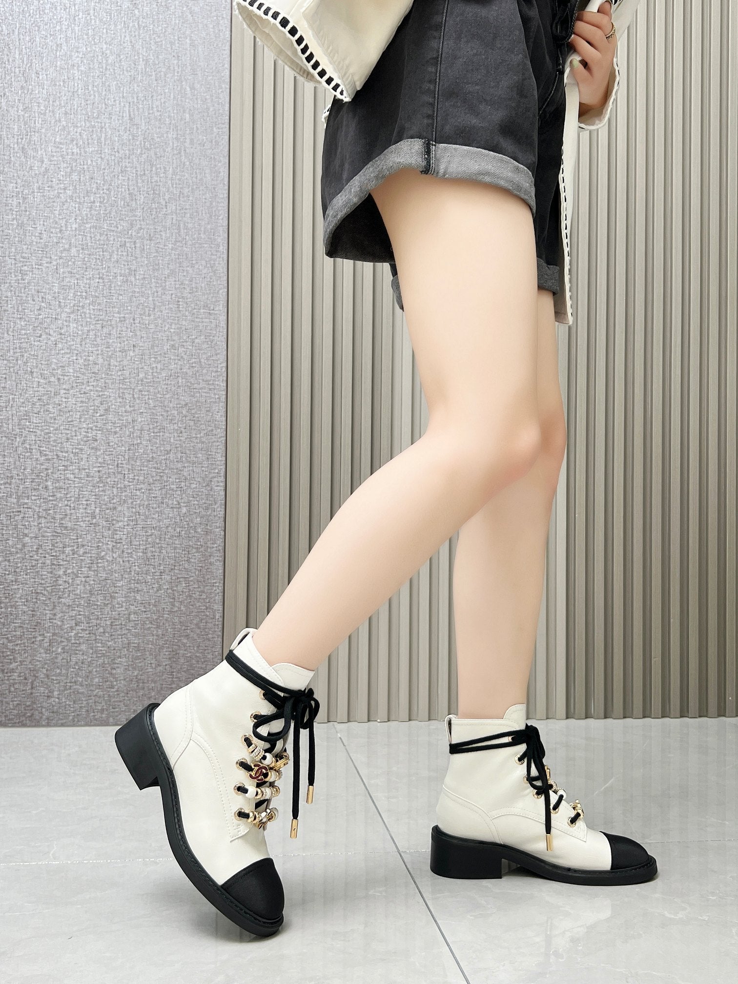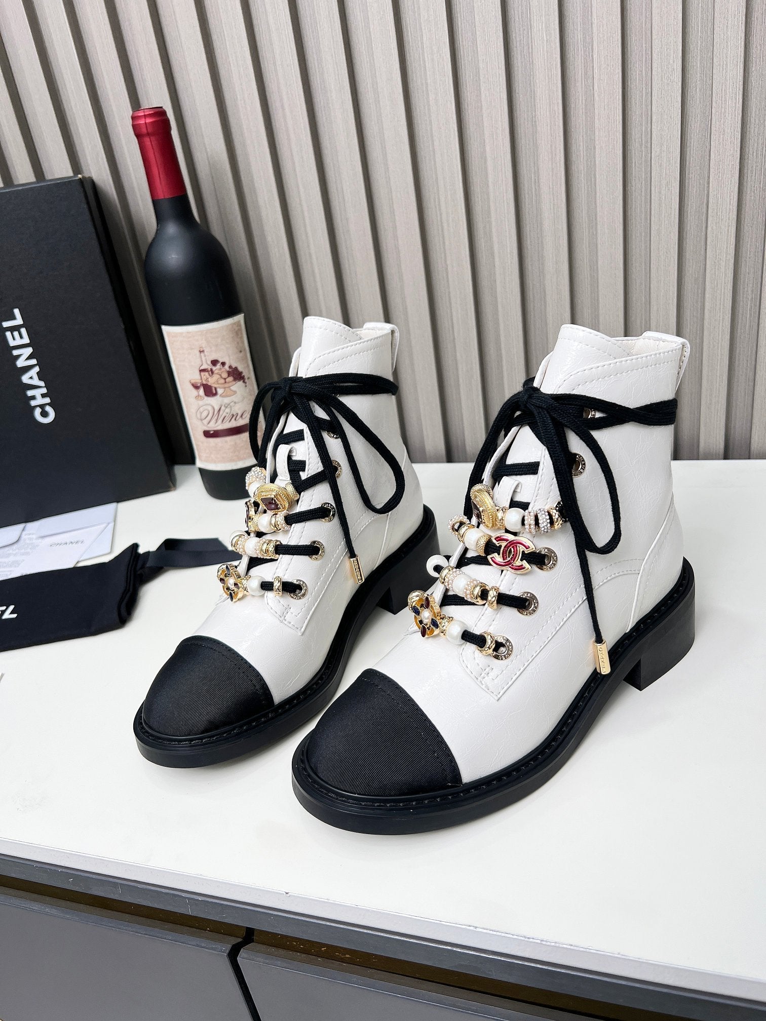 CC Ankle Boots Black Mix White Calfskin And Fleece