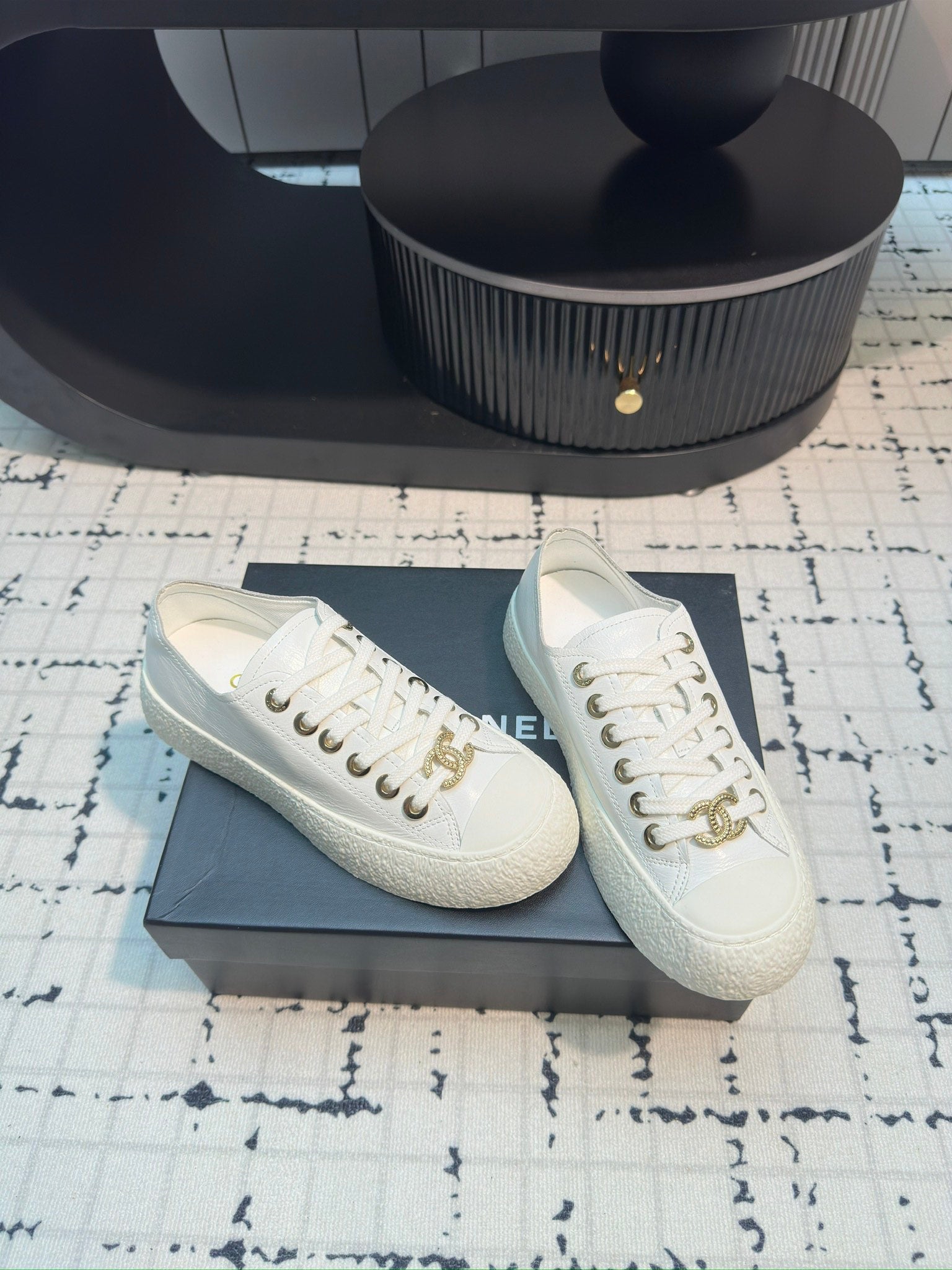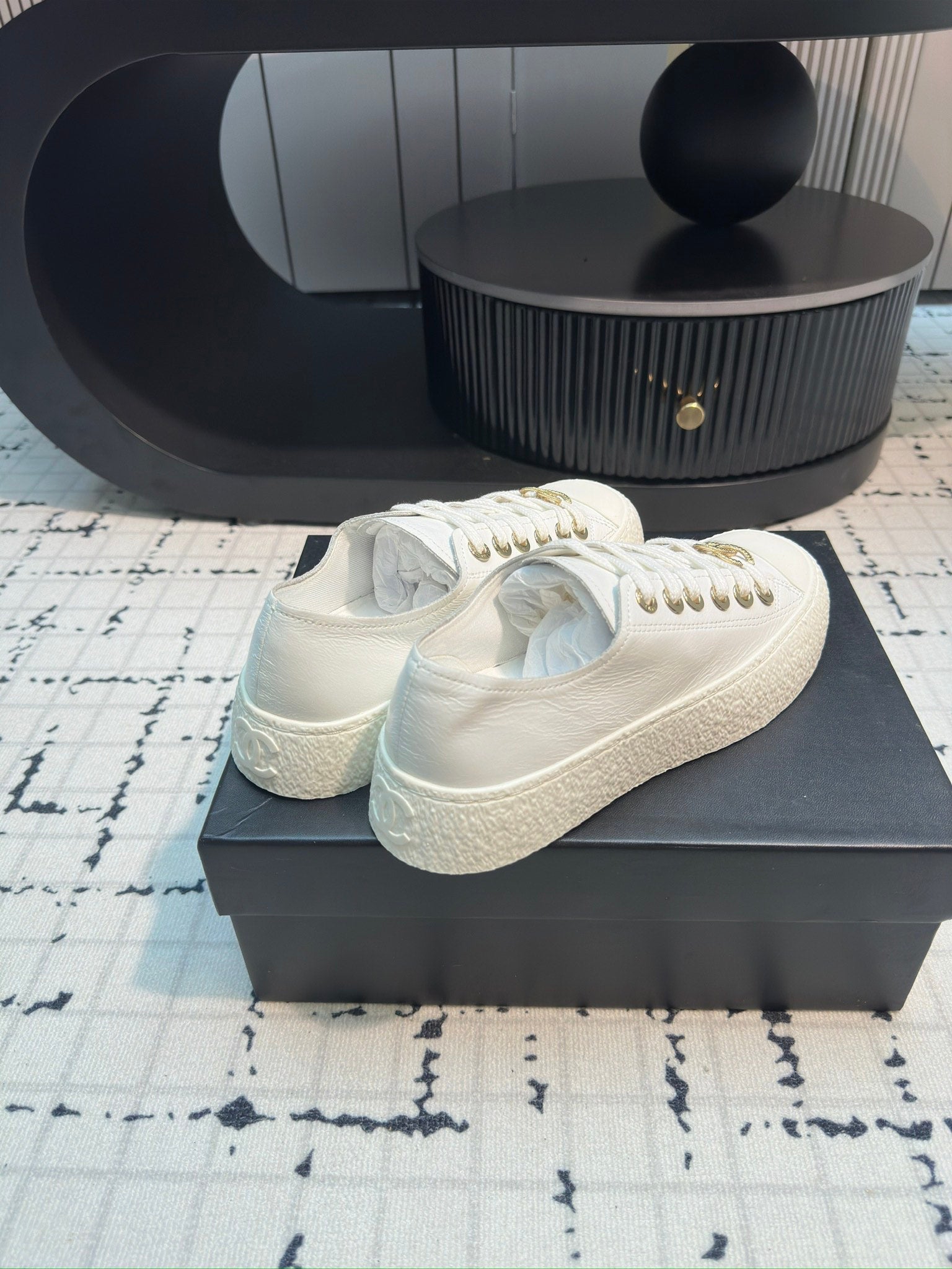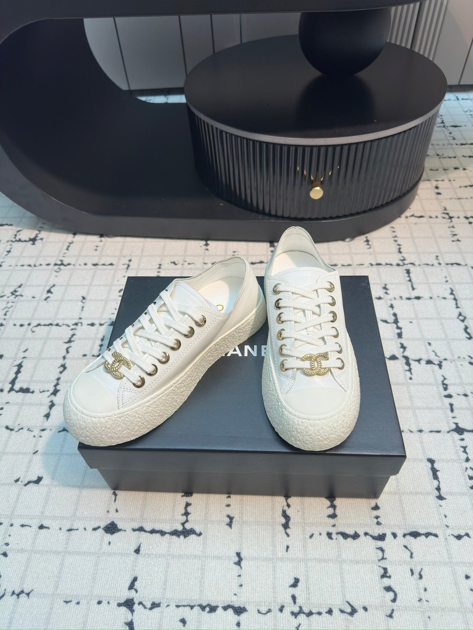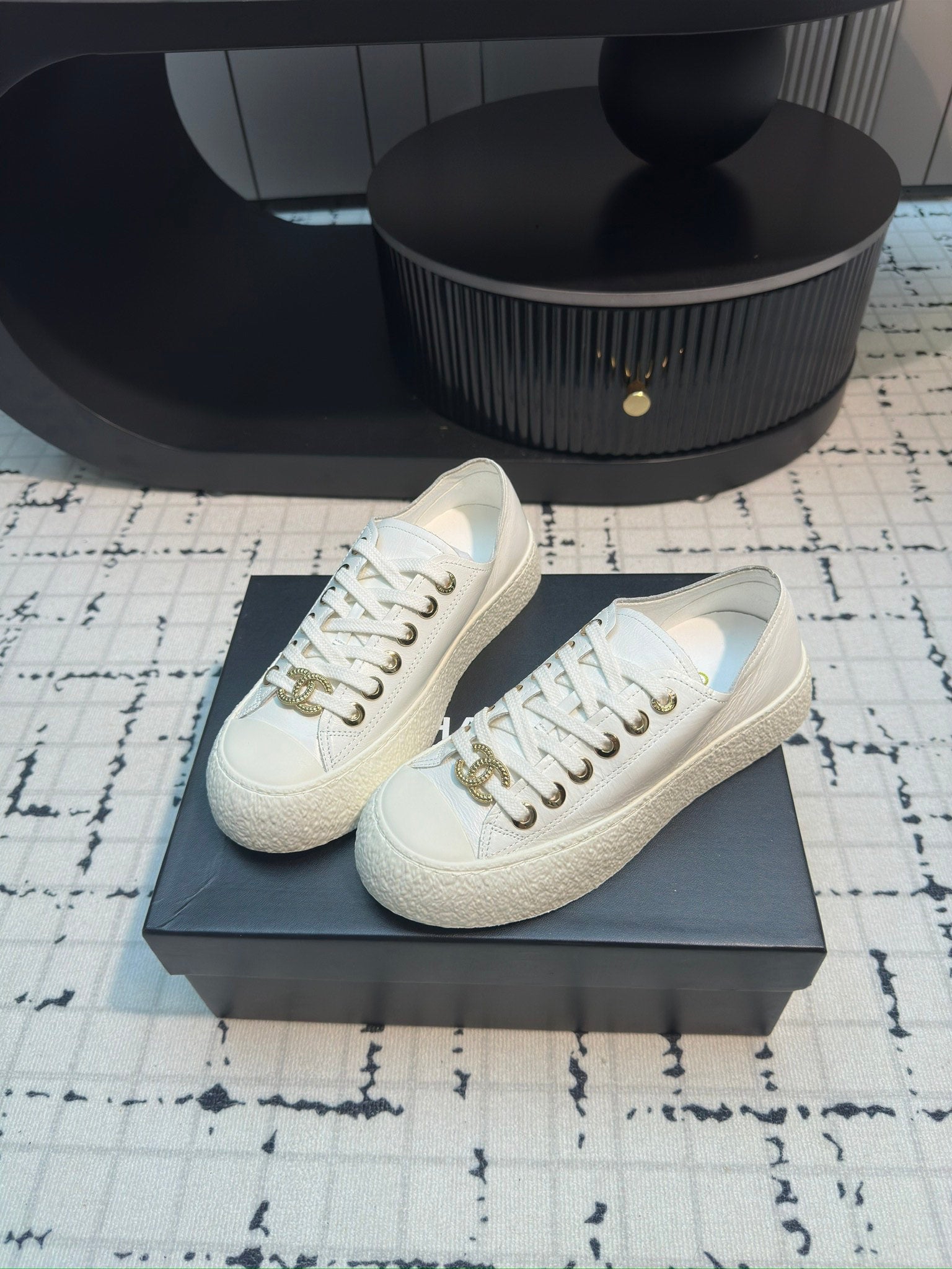 CC Low Sneaker 30mm Light Beige Mix White With Small Flowers Cavas Fabric