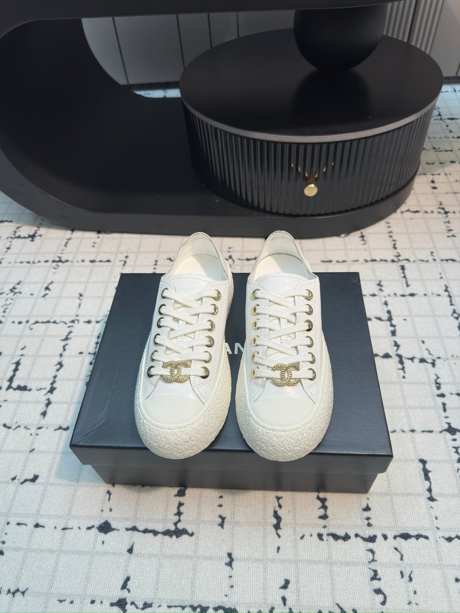 CC Low Sneaker 30mm White With Small Flowers Cavas Fabric