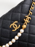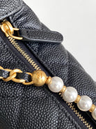 CC 25S Pouch Bag 17cm Black Grained Calfskin Pearl
