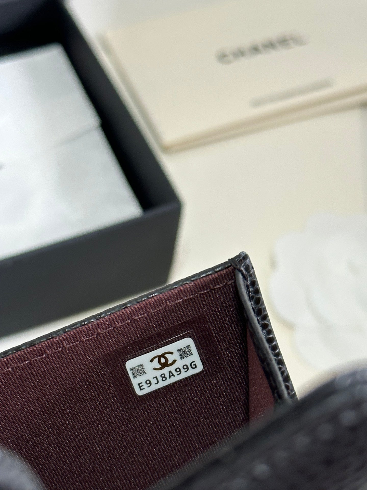 CC Classic Card Holder Black Caviar Cowhide Gold Buckle 243701