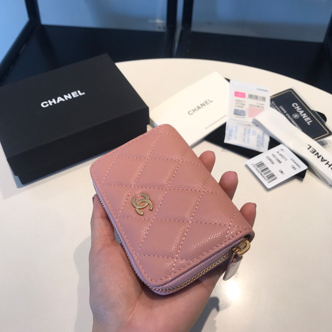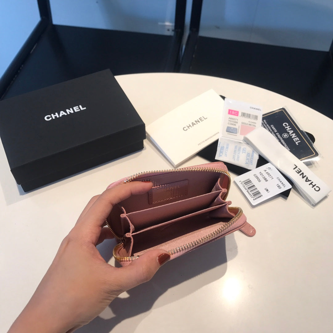 CC ZIPPED COIN BASIC PURSE 11 PEACH CALFSKIN GOLD ICON