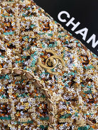 Chanel 2025 Flap Bag 21cm Beige mix Colors Sequin Leather 320284