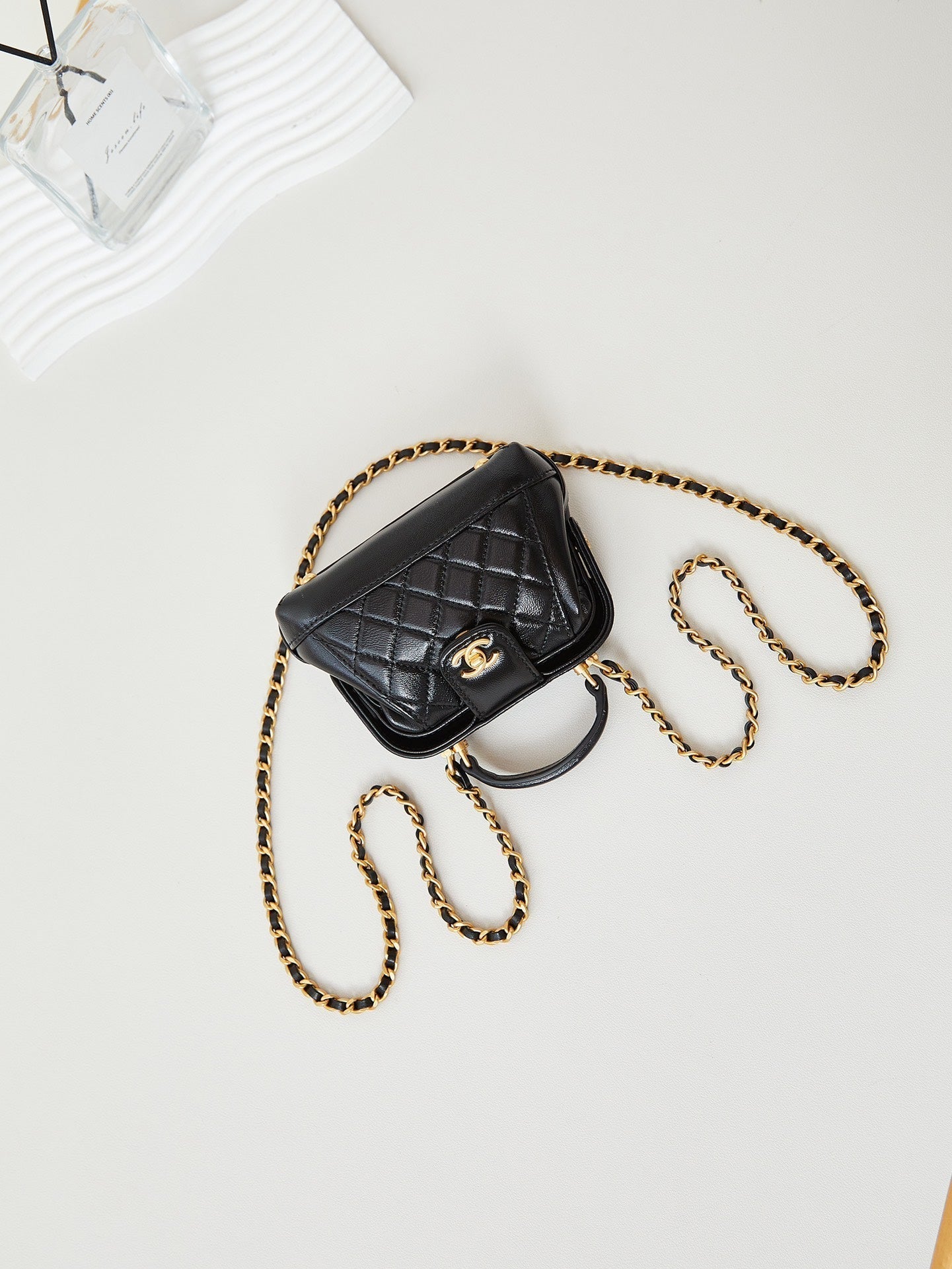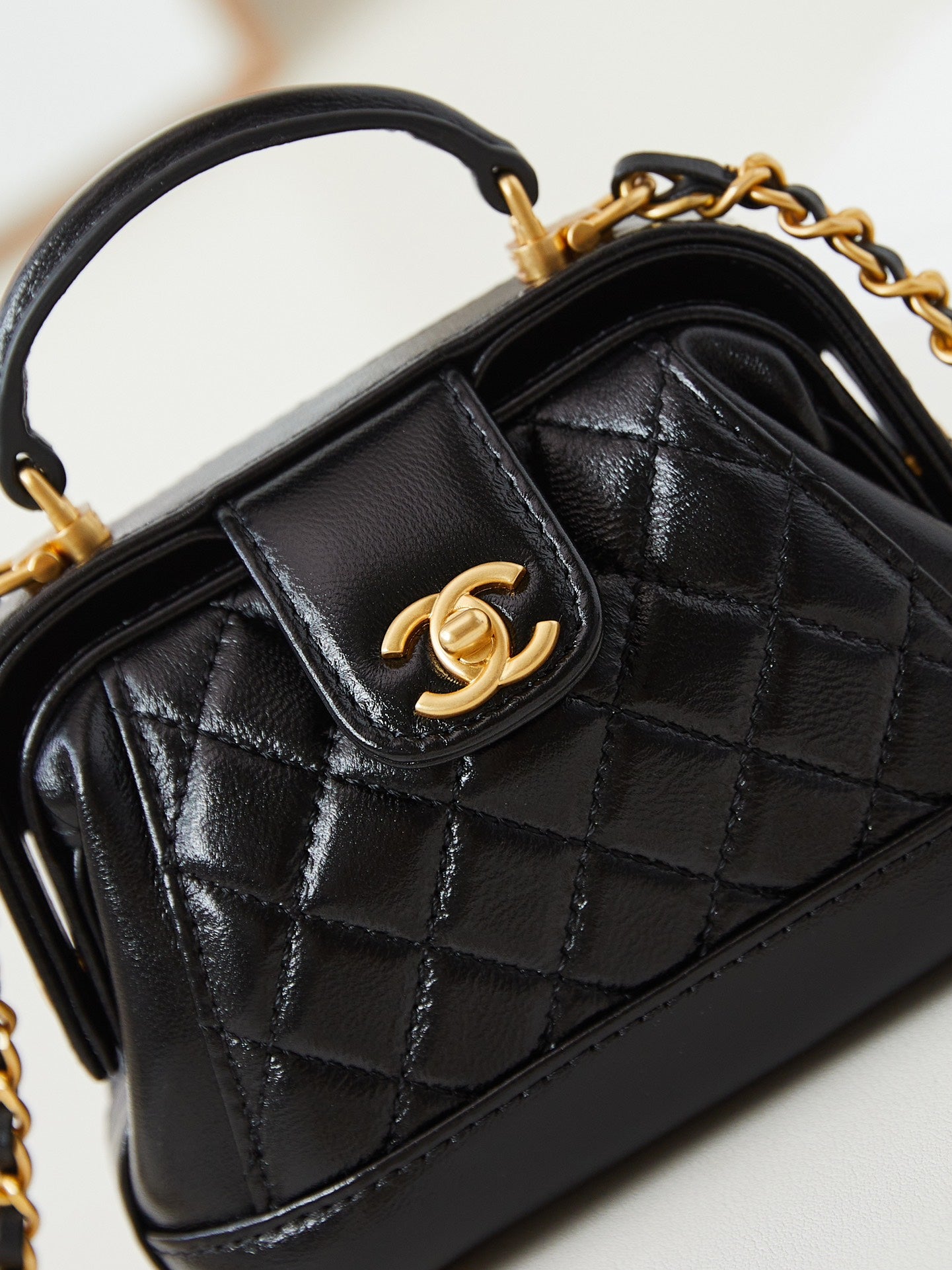 25C Mini Flap Bag Top Handle 20cm Black Lambskin Black Hardware Premium Version