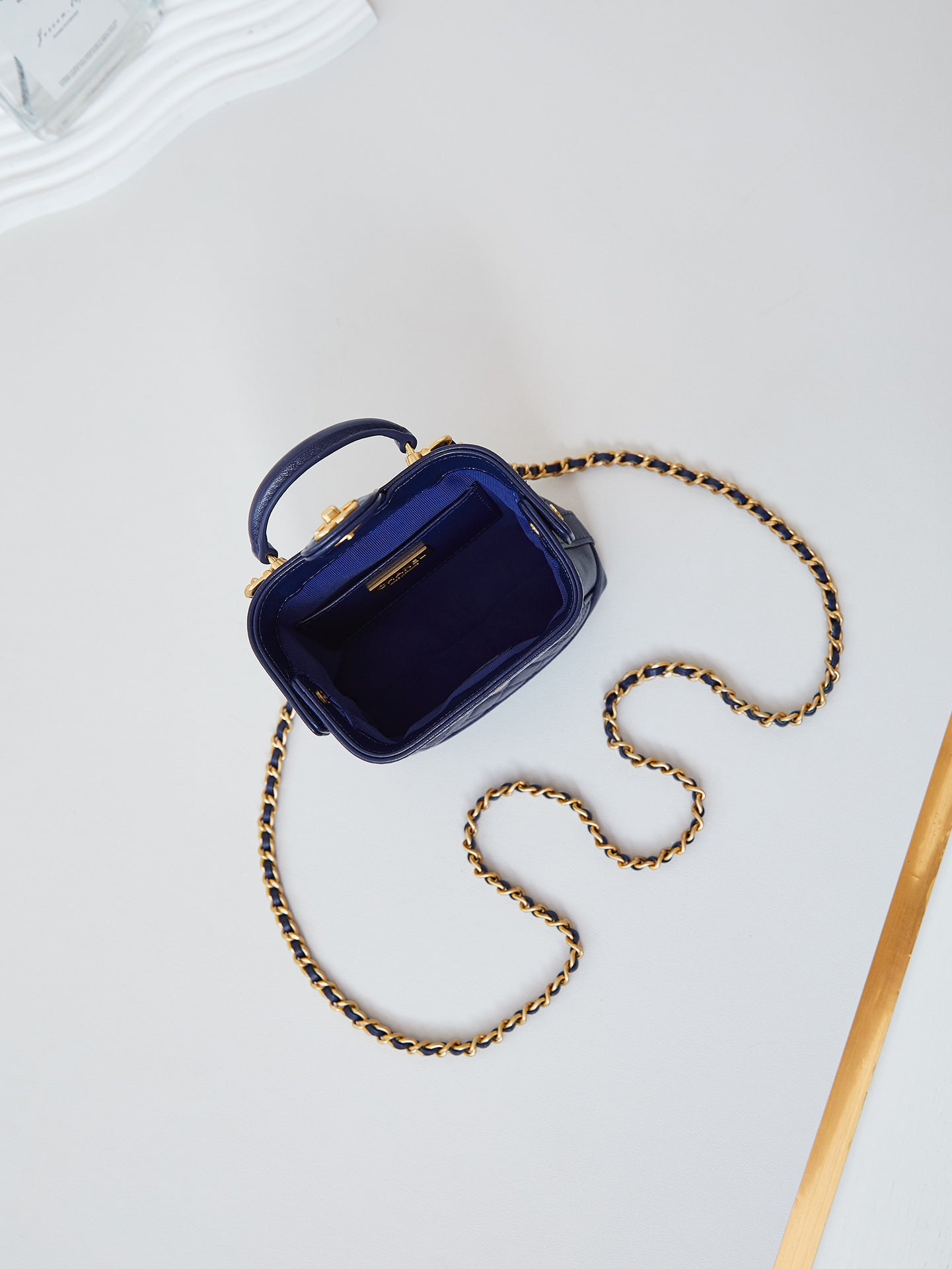 CC 24A Mini Top Handle 13cm Night Blue Wax Leather Gold Hardware 238459