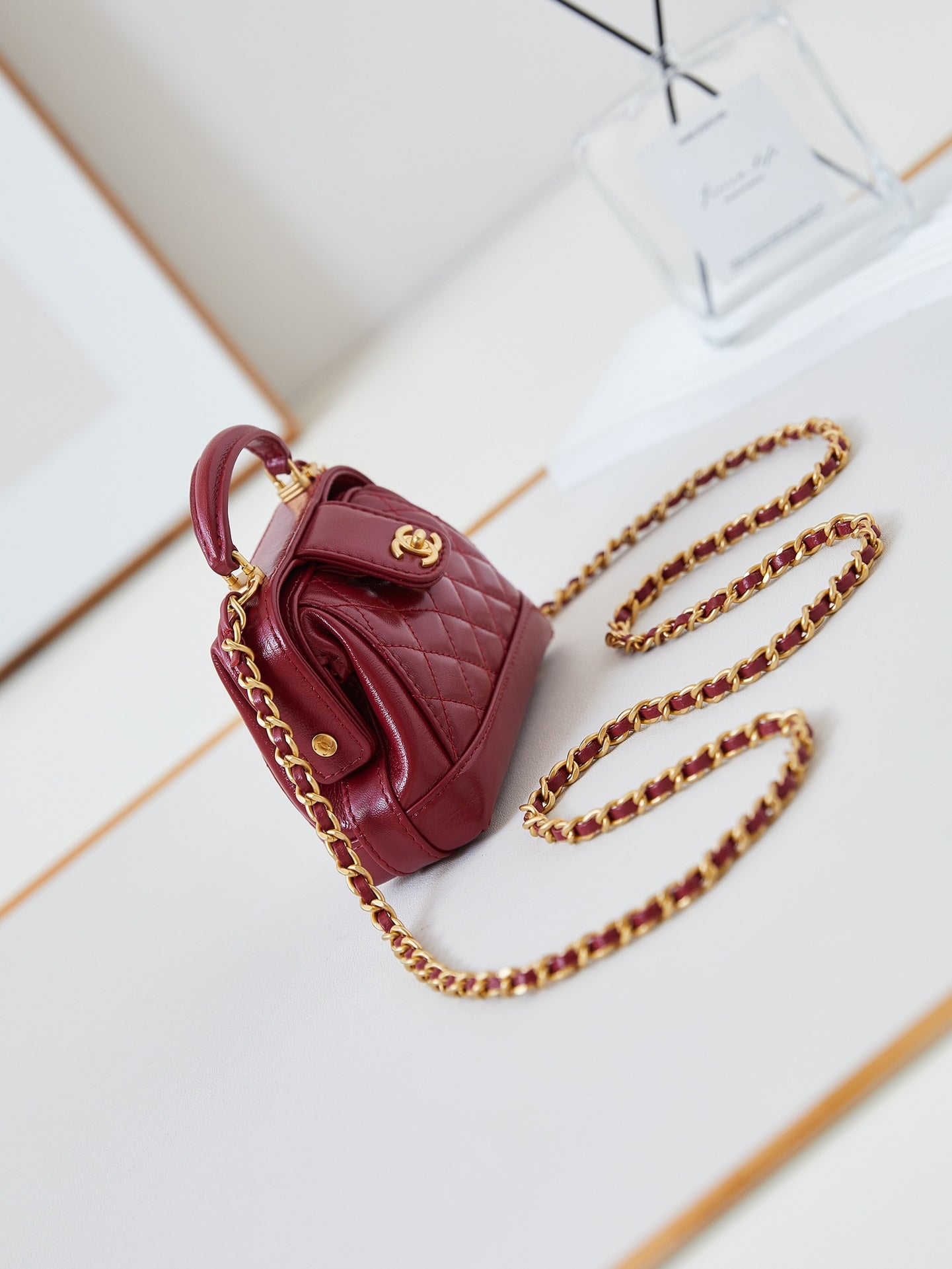 CC Flap Bag With Top Handle 19cm Wine Red Sheepskin Gold Hardware 238483