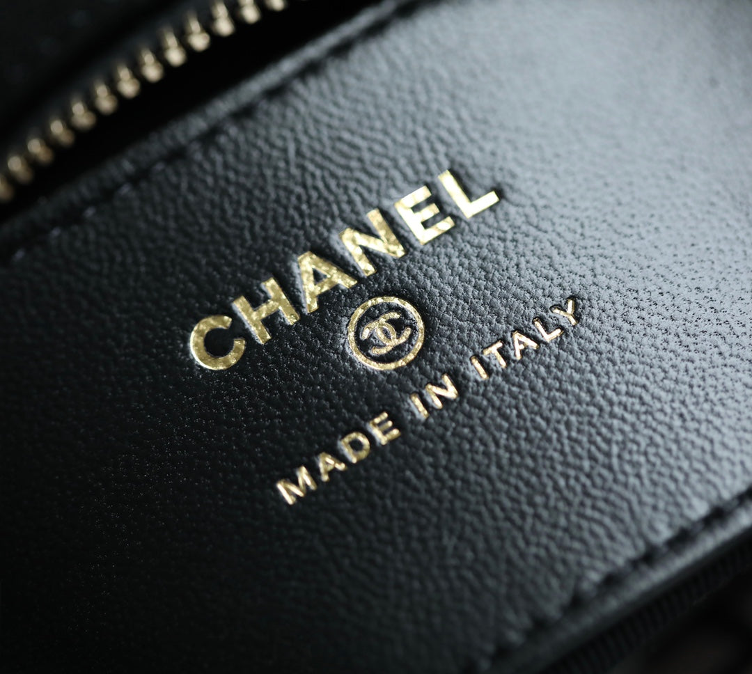 CC VANITY CASE 11 BLACK LAMBSKIN GOLD HARDWARE