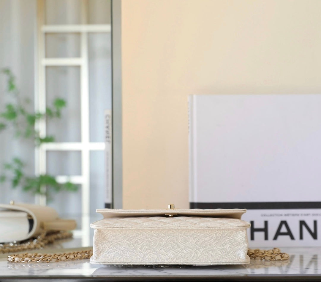 coco handle flap bag 23cm white quilted caviar light gold hardware