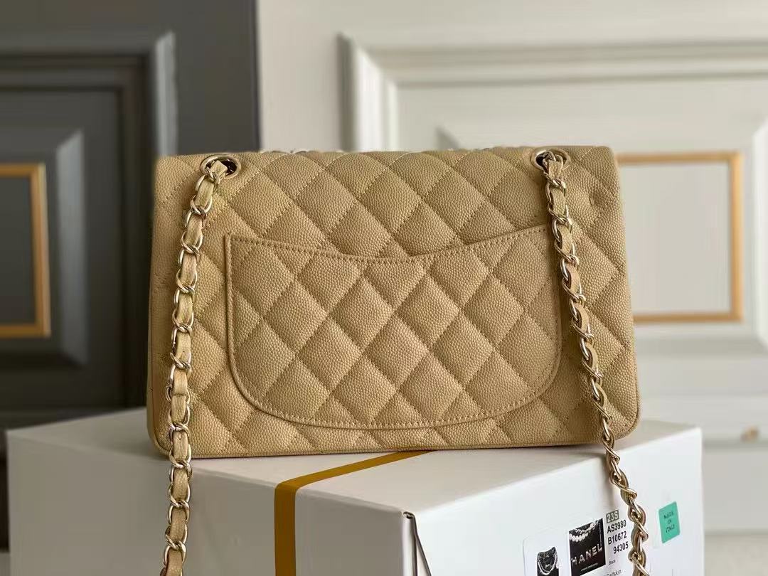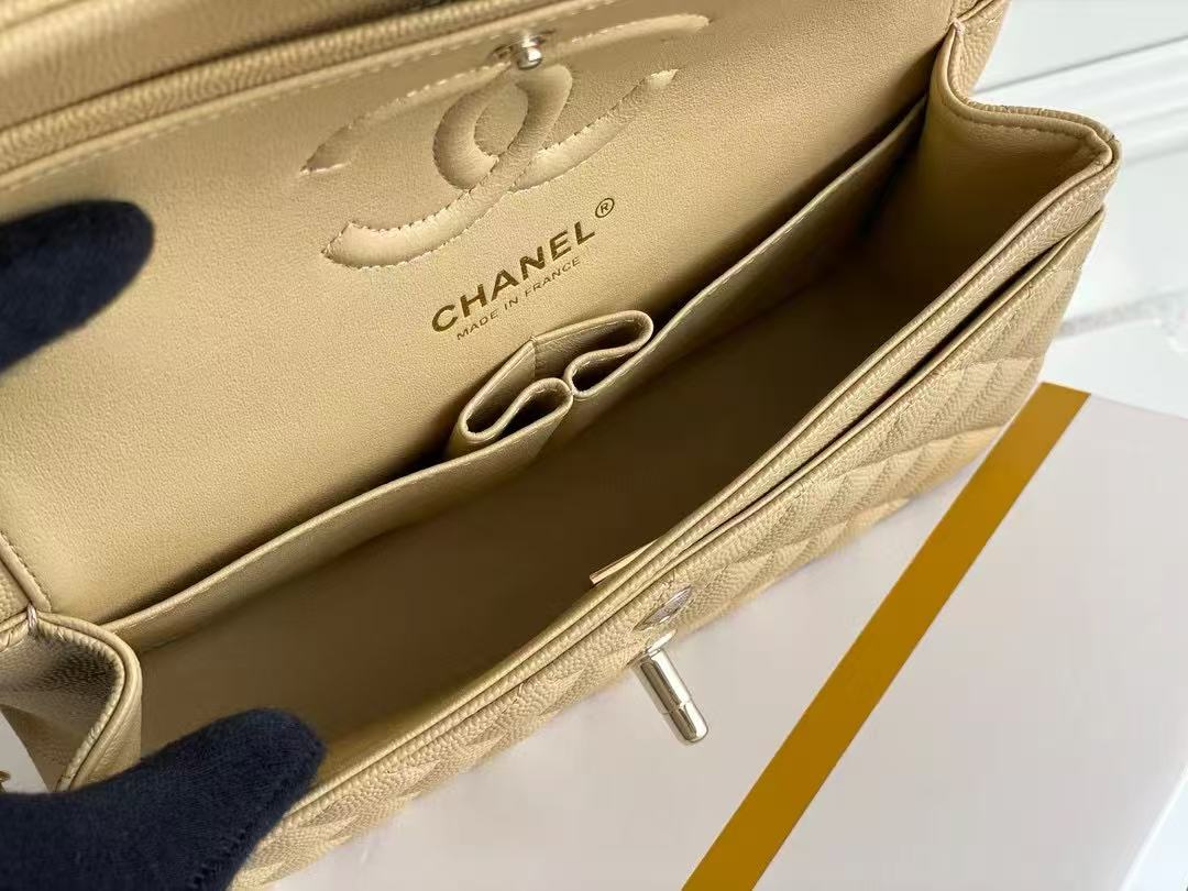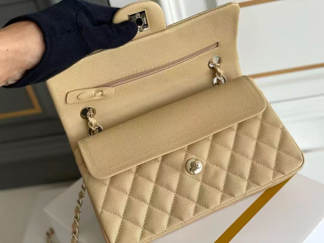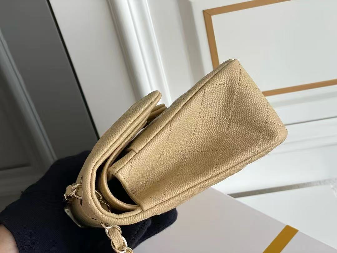 flap bag mini 23cm beige caviar gold hardware