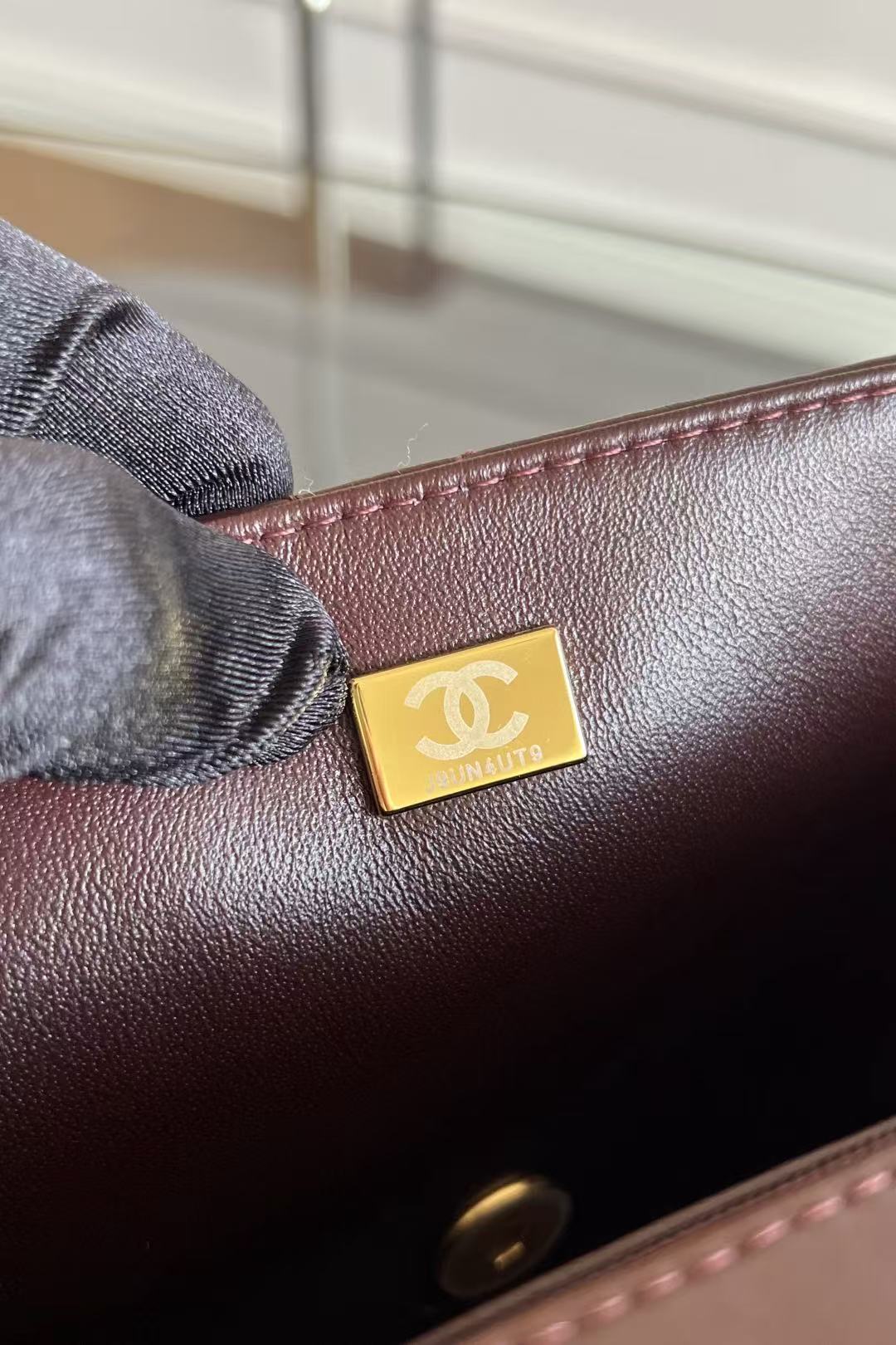 CC 24A Vanity Top Handle 16cm Burgundy Grained Calfskin Gold Hardware
