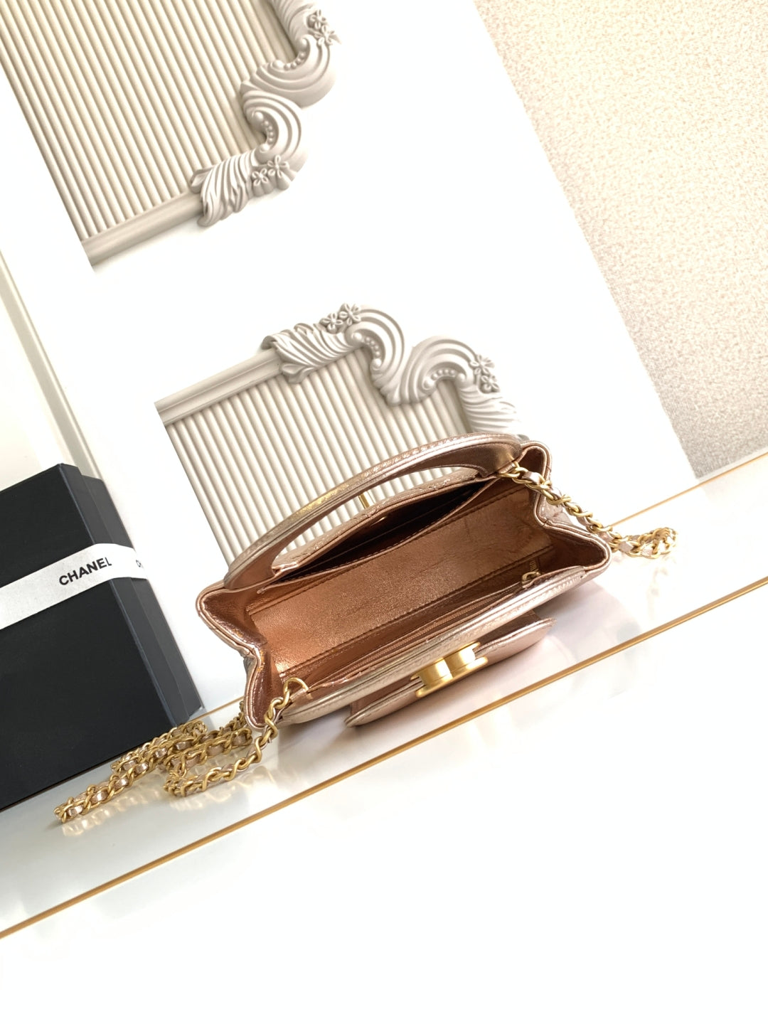 cc 24p mini flap bag 17cm pearlescent pink lambskin pearl chain