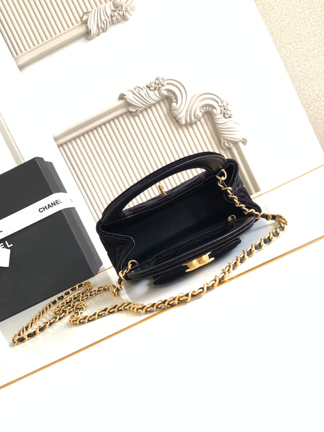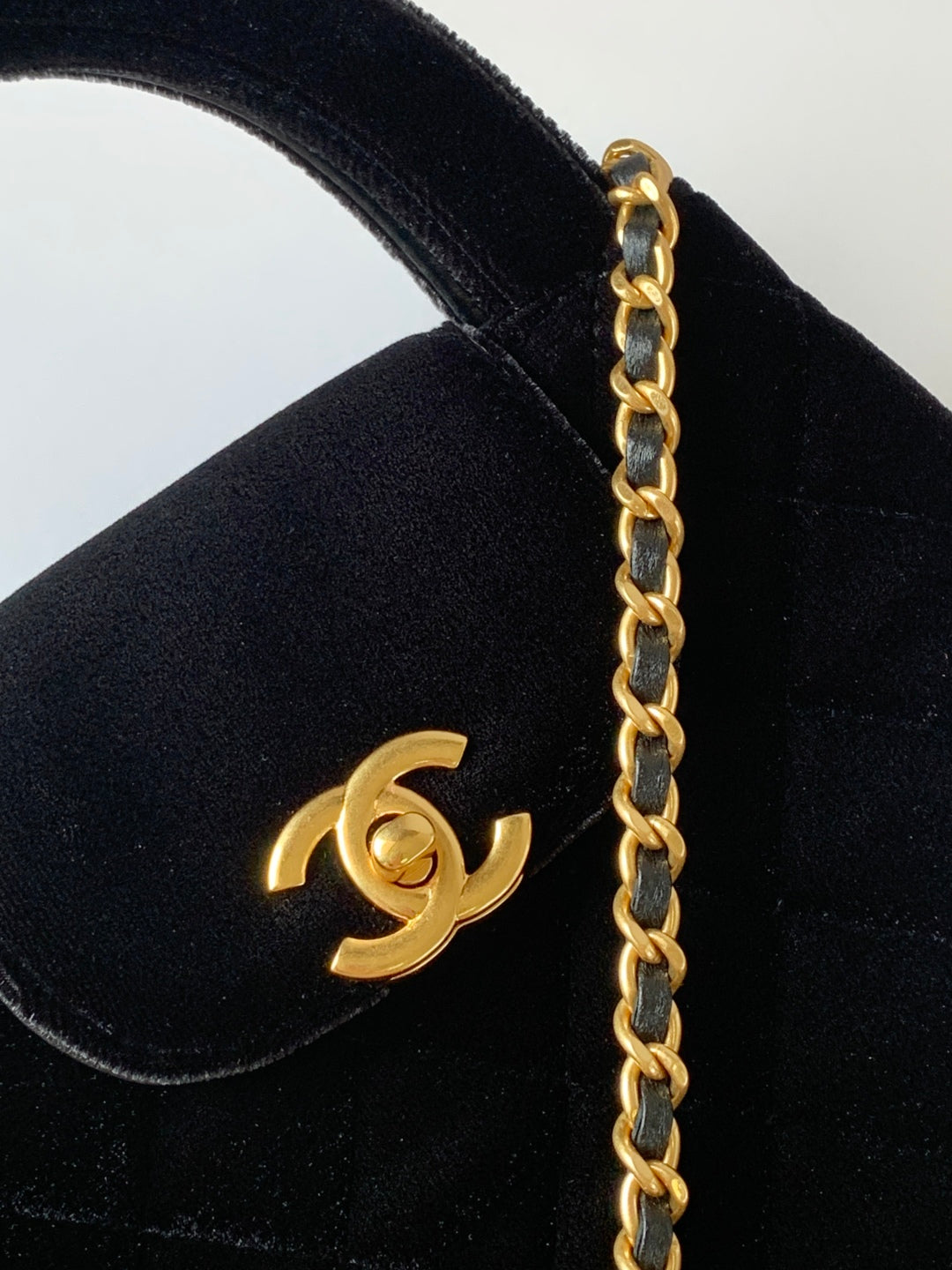 CC 25 Mini Classic Flap Bag 20cm Black Velvet Strass Gold Hardware