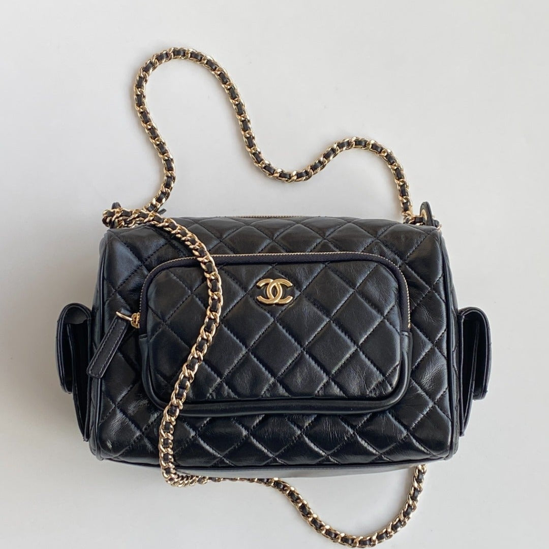 CC 2025 Multi-Pockets Camera Case Bag Black Calfskin