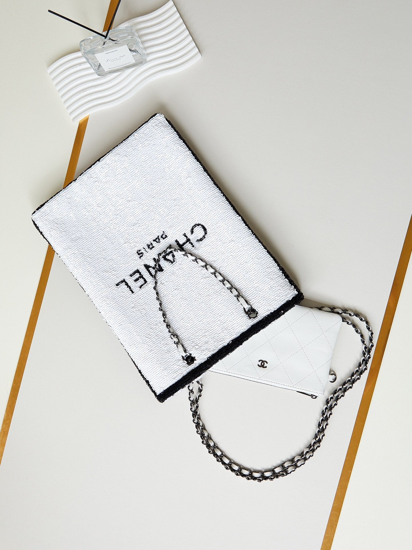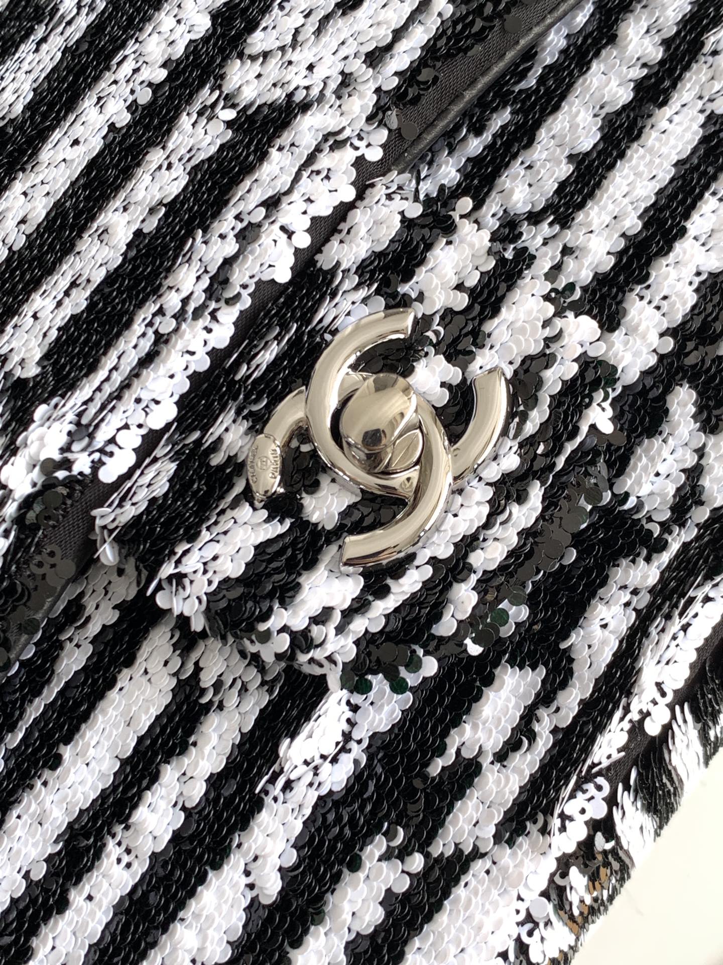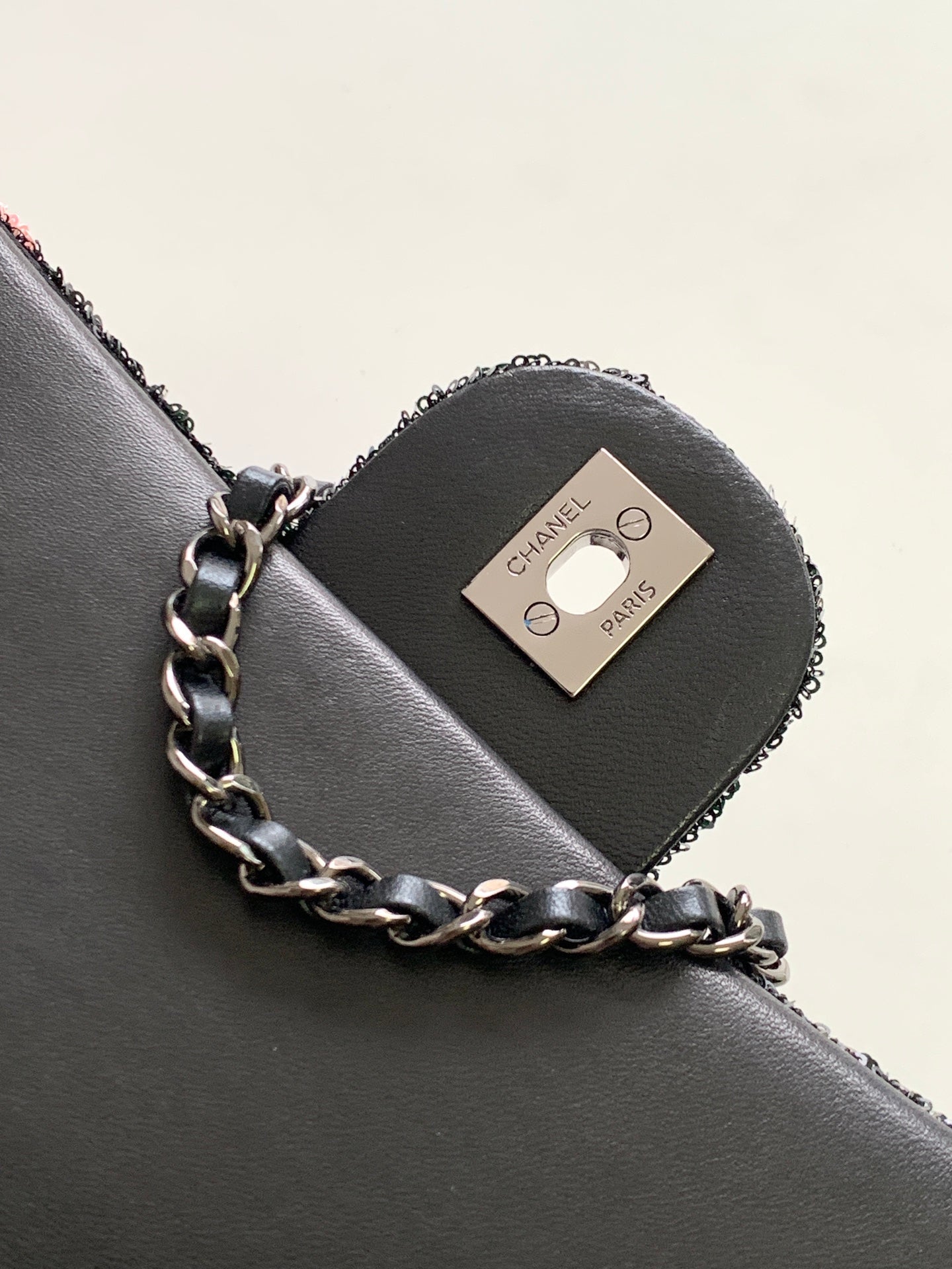 cc 24s31 shopping bag dark pink black sequins black hardware
