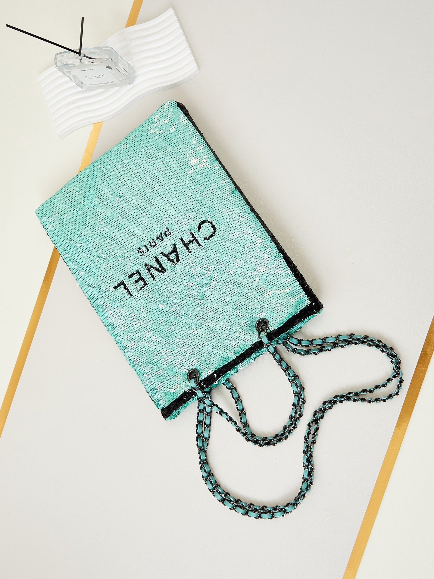 cc 24s31 shopping bag 30cm light green lambskin silver hardware