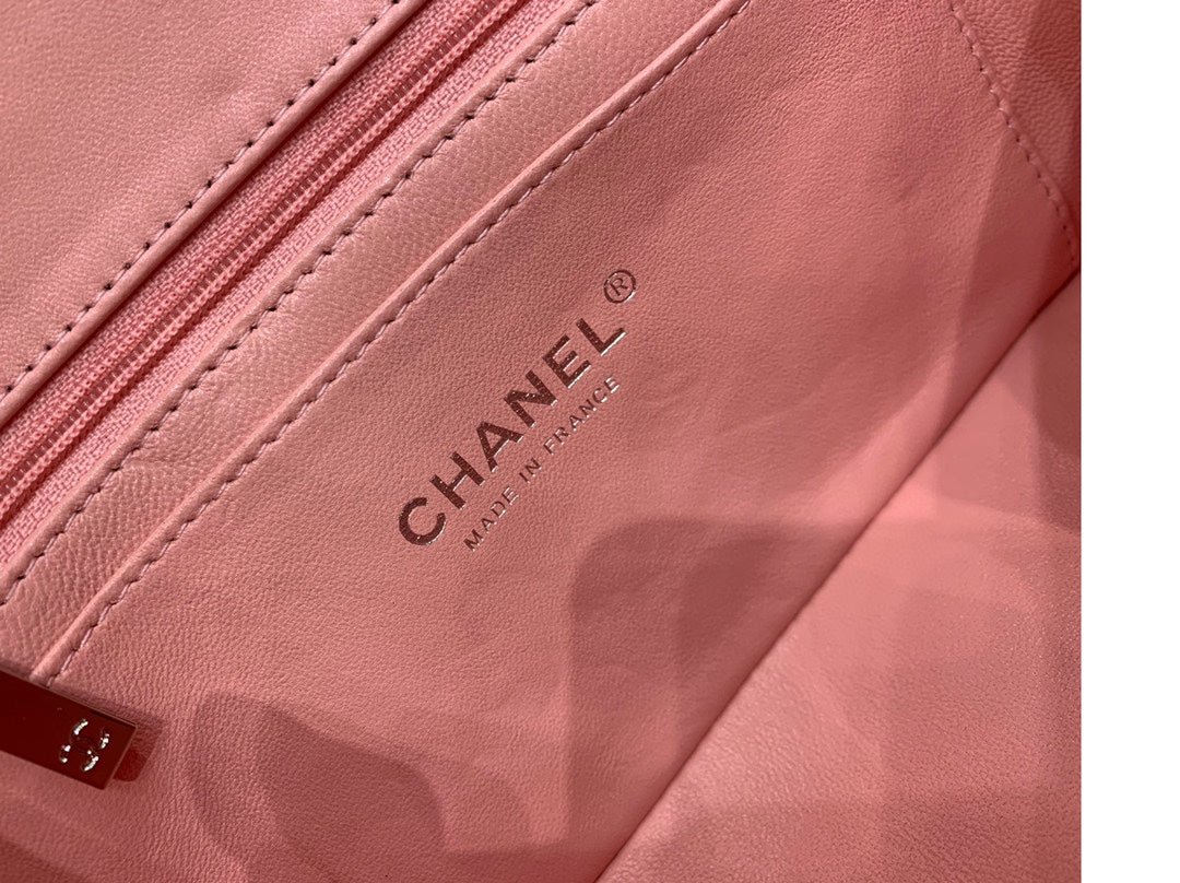 flap bag mini 20cm pink lambskin silver hardware