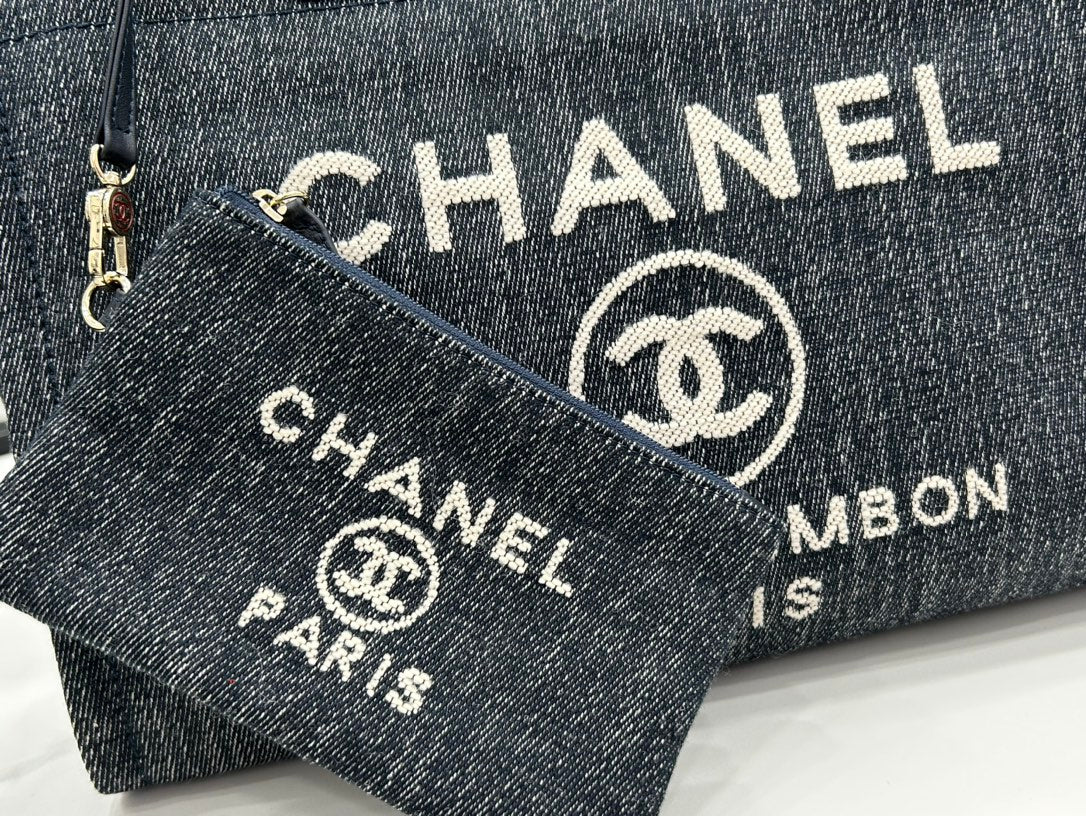 CC Deauville Tweed Bag 33x24x14.5cm Blue Sky Leather Gold Hardware 33