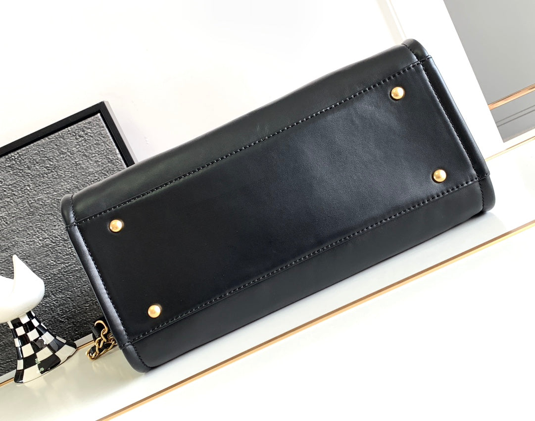 CC 2Way Chain Shoulder Tote Bag Black Leather