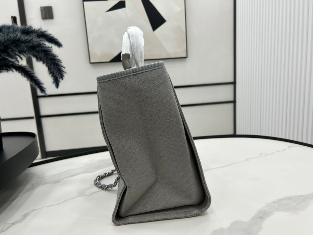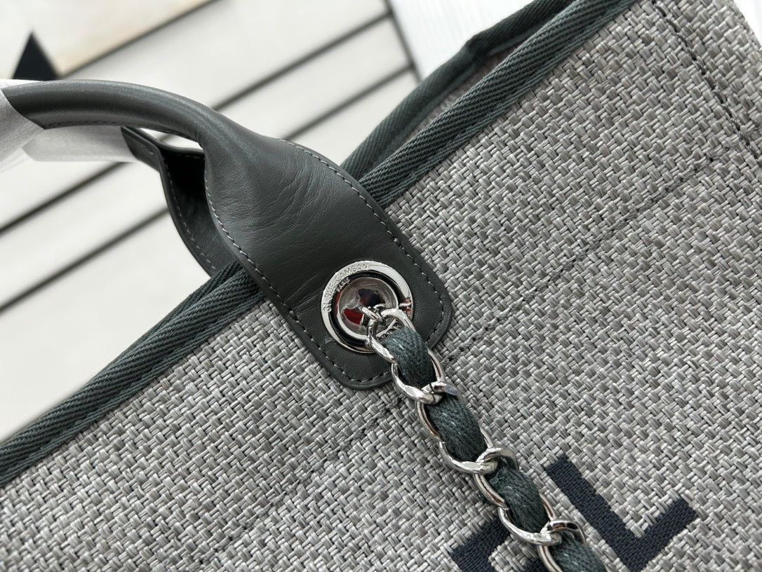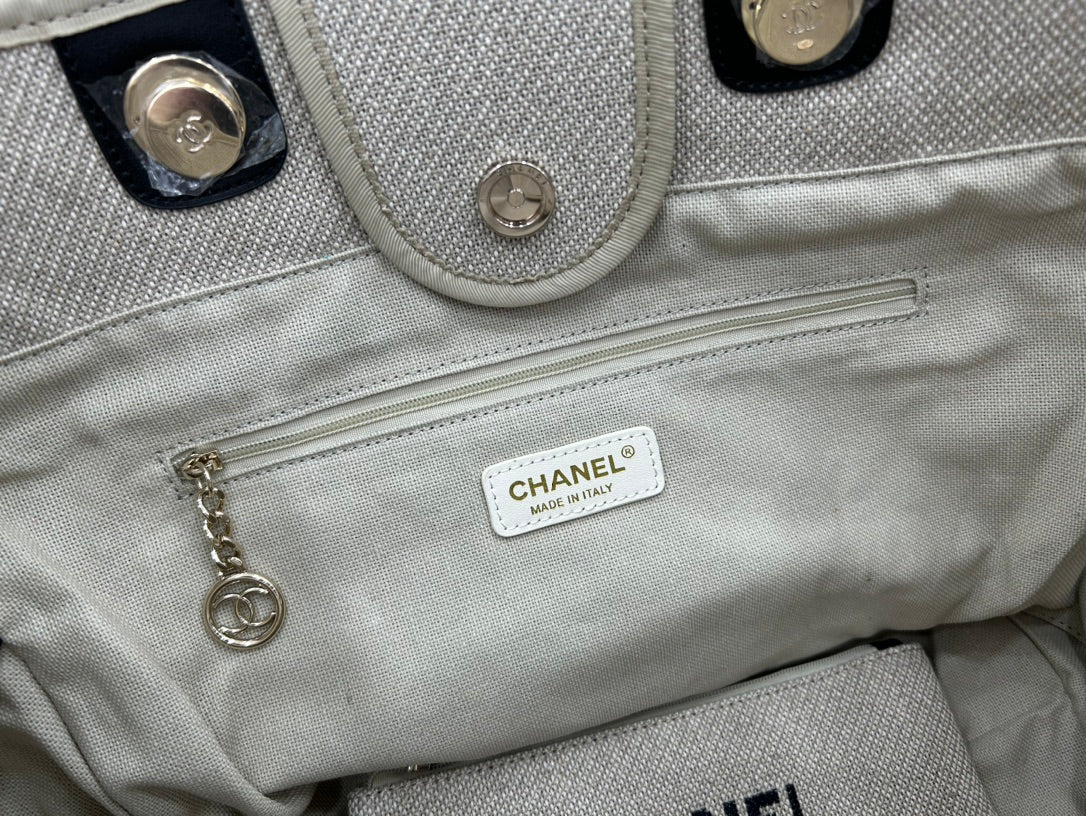 CC Deauville Tweed Bag Light Beige Leather Silver Hardware 9
