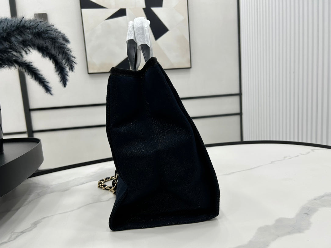 CC Deauville Tweed Bag Black Leather Gold Hardware 34