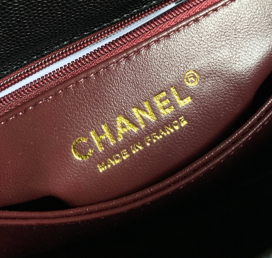 coco handle flap bag 23cm black quilted caviar with dark red top handle