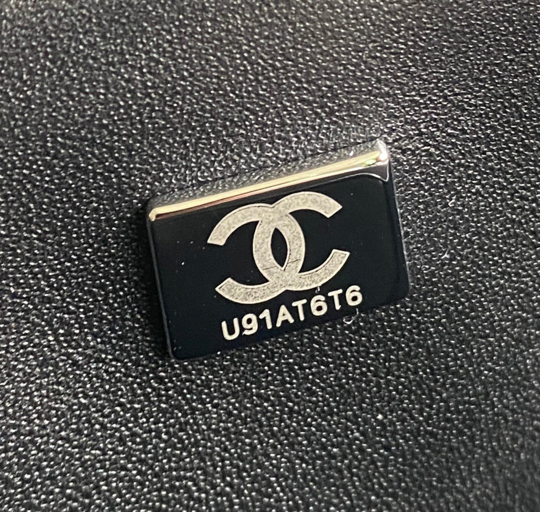 cc 24s mini flap bag 20cm black lambskin pearl ball