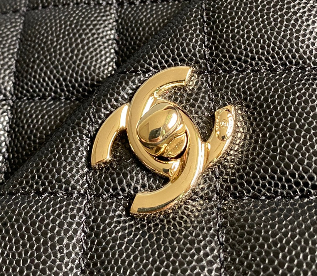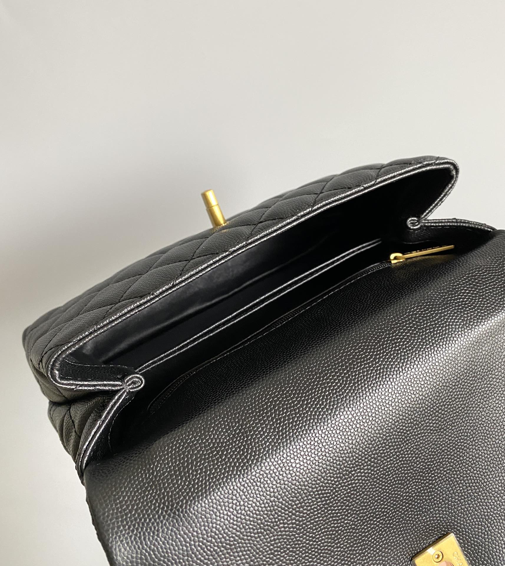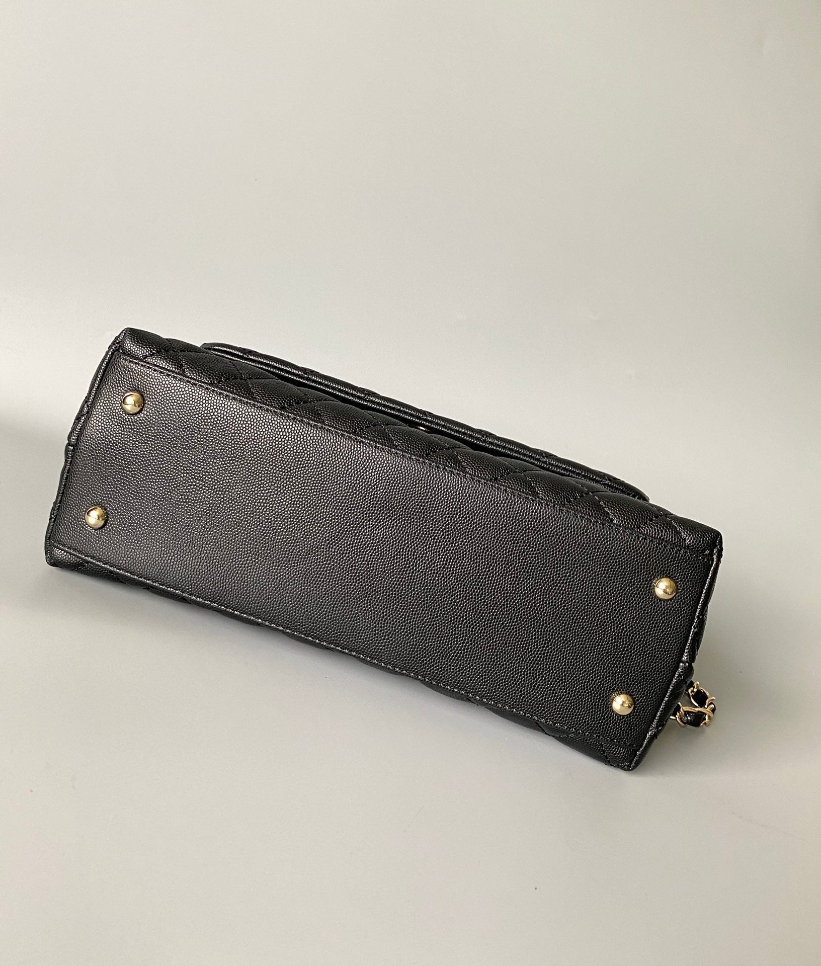 coco handle large flap bag 28cm black quilted caviar gold hardware