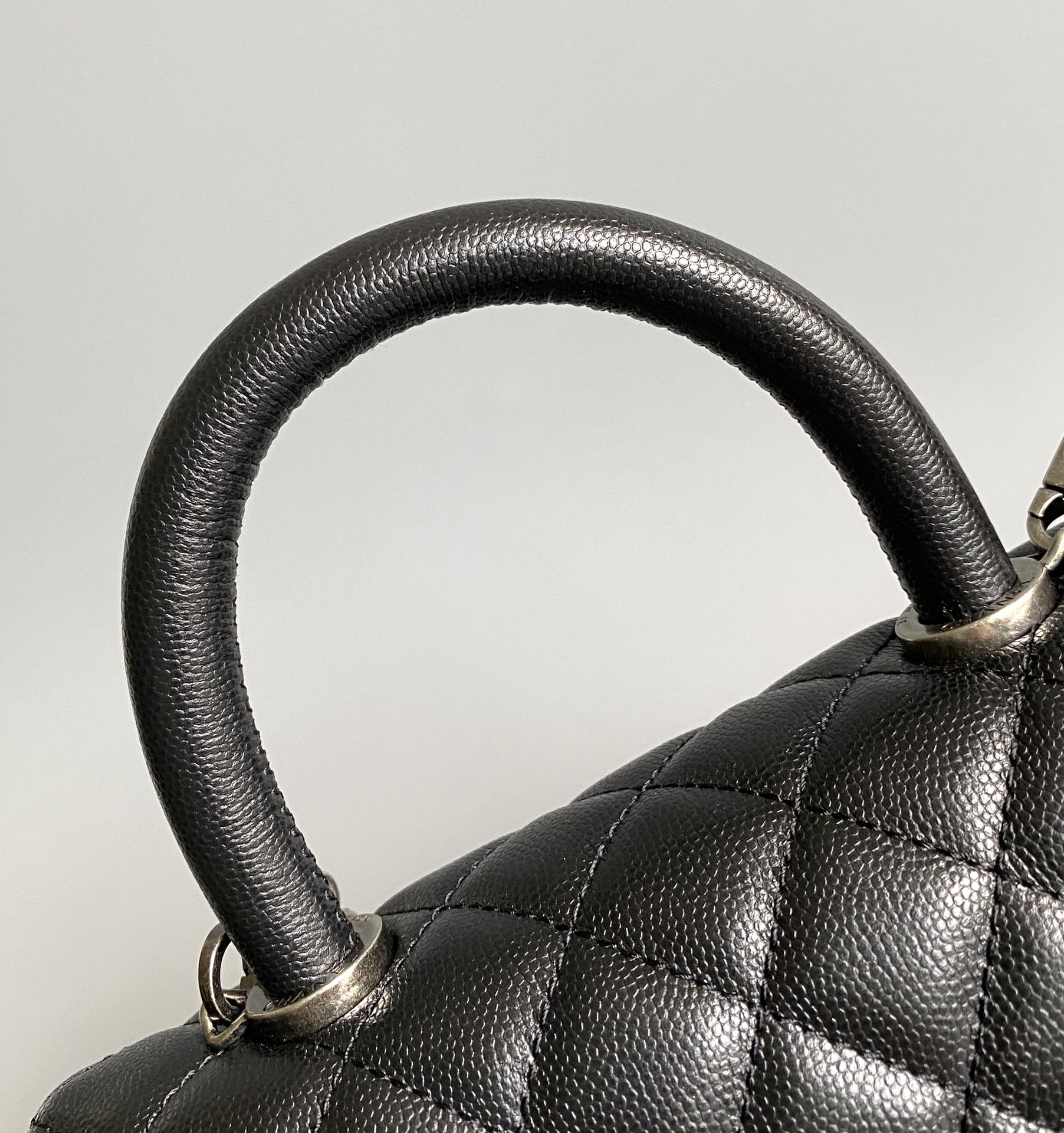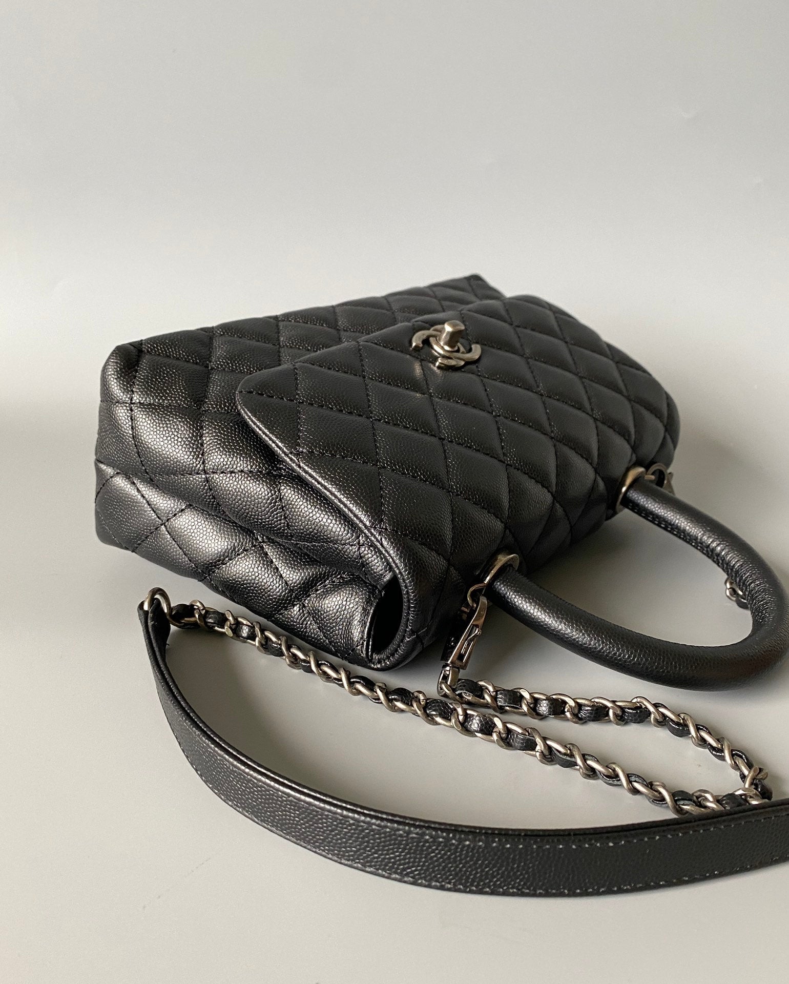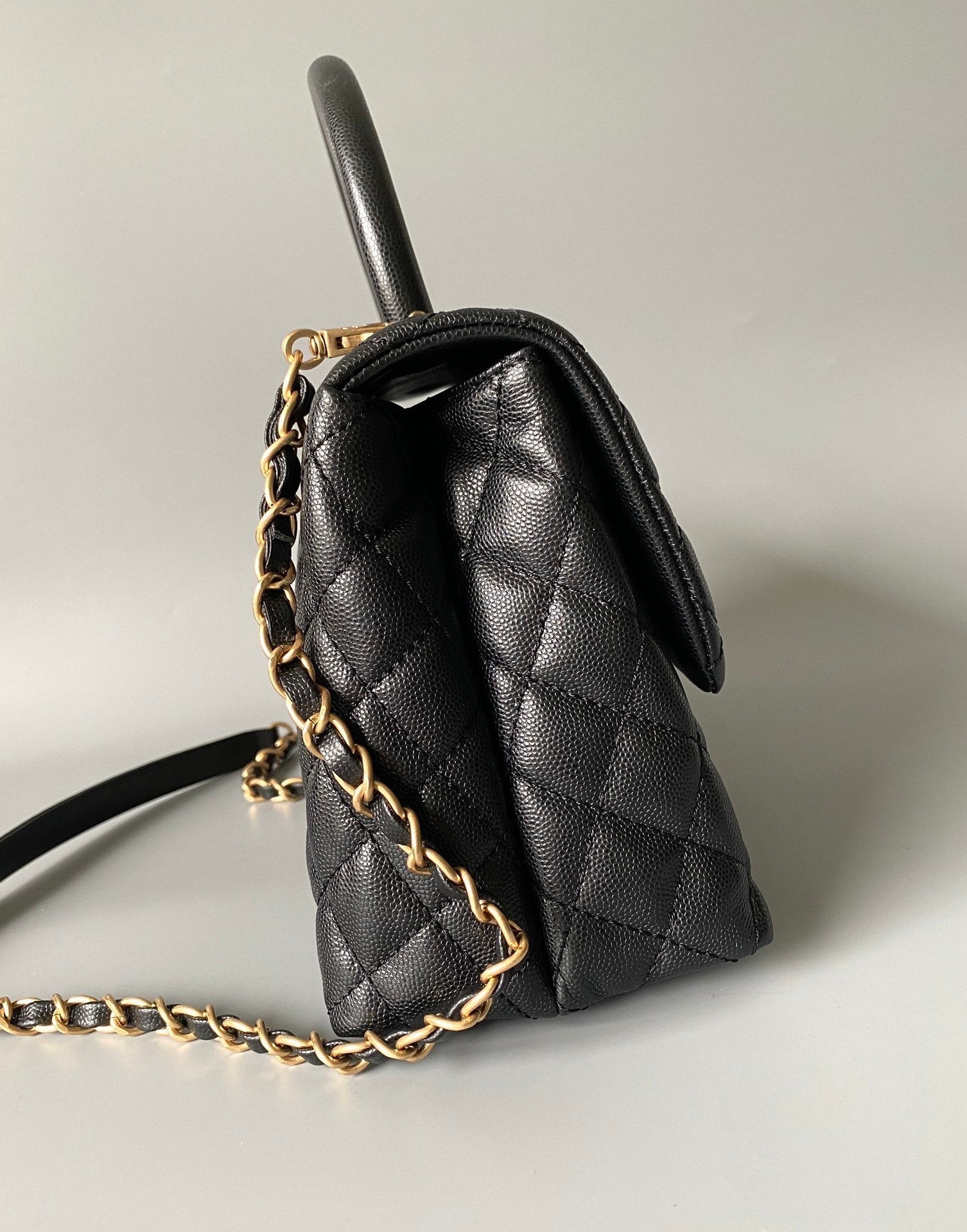 coco handle flap bag 23cm black quilted caviar gold hardware
