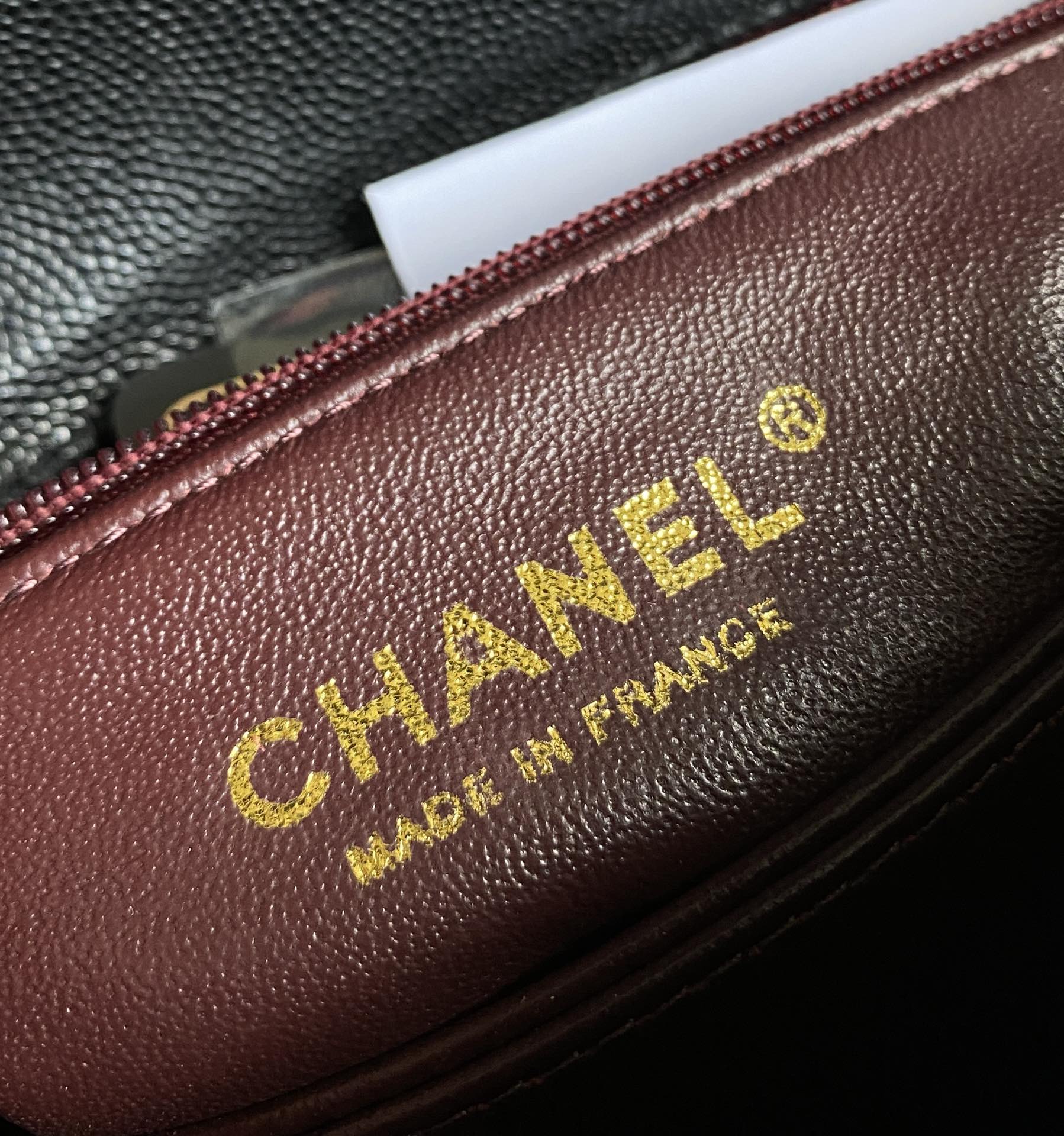 coco handle medium flap bag 28cm black quilted caviar dark red top handle