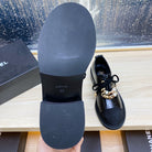 CC COMBAT OXFORD SHOES IN BLACK WRINKLED CALFSKIN AND GROSGRAIN WITH FAUX PEARL