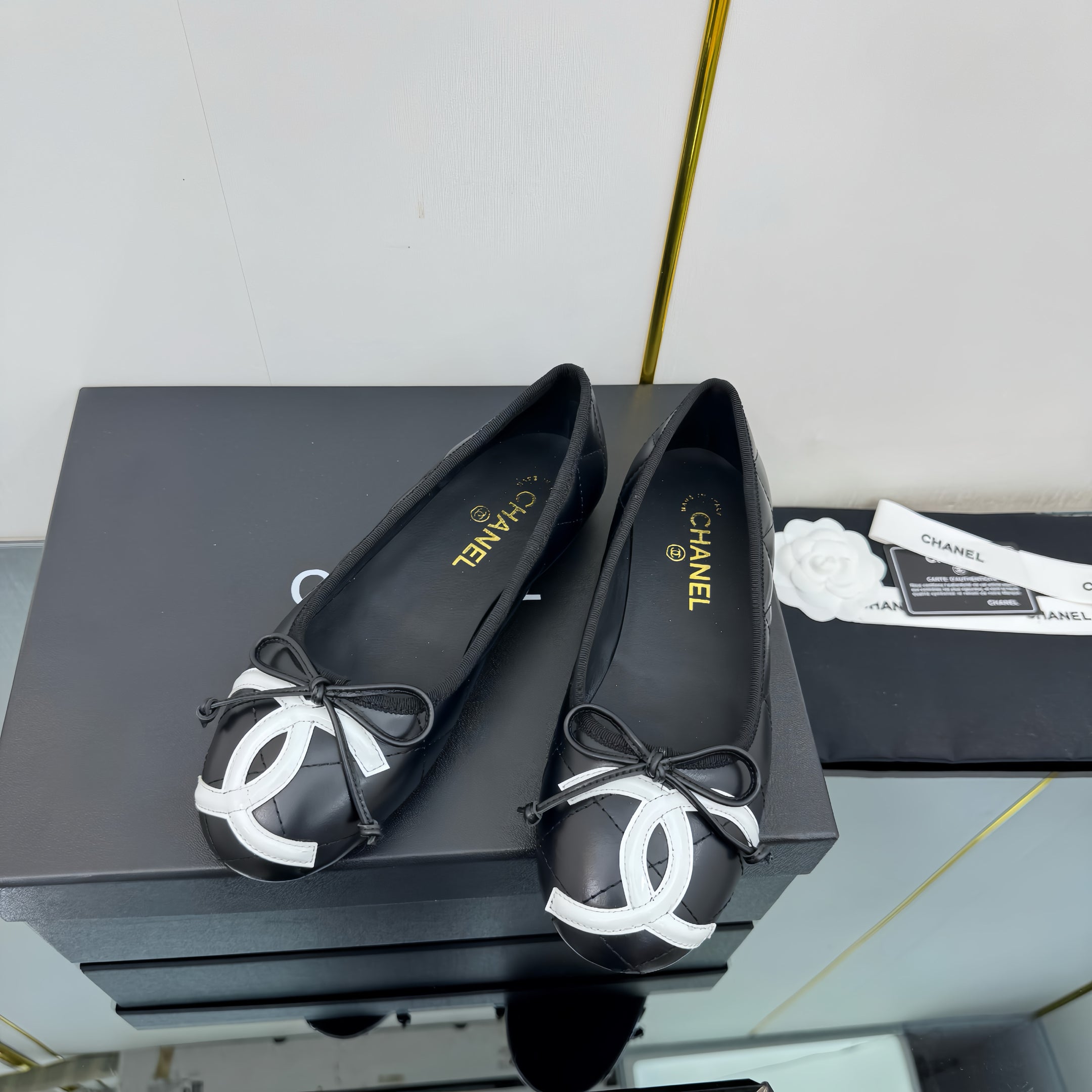 CC Loafers Black/White Sheepskin Mix Bow 297794