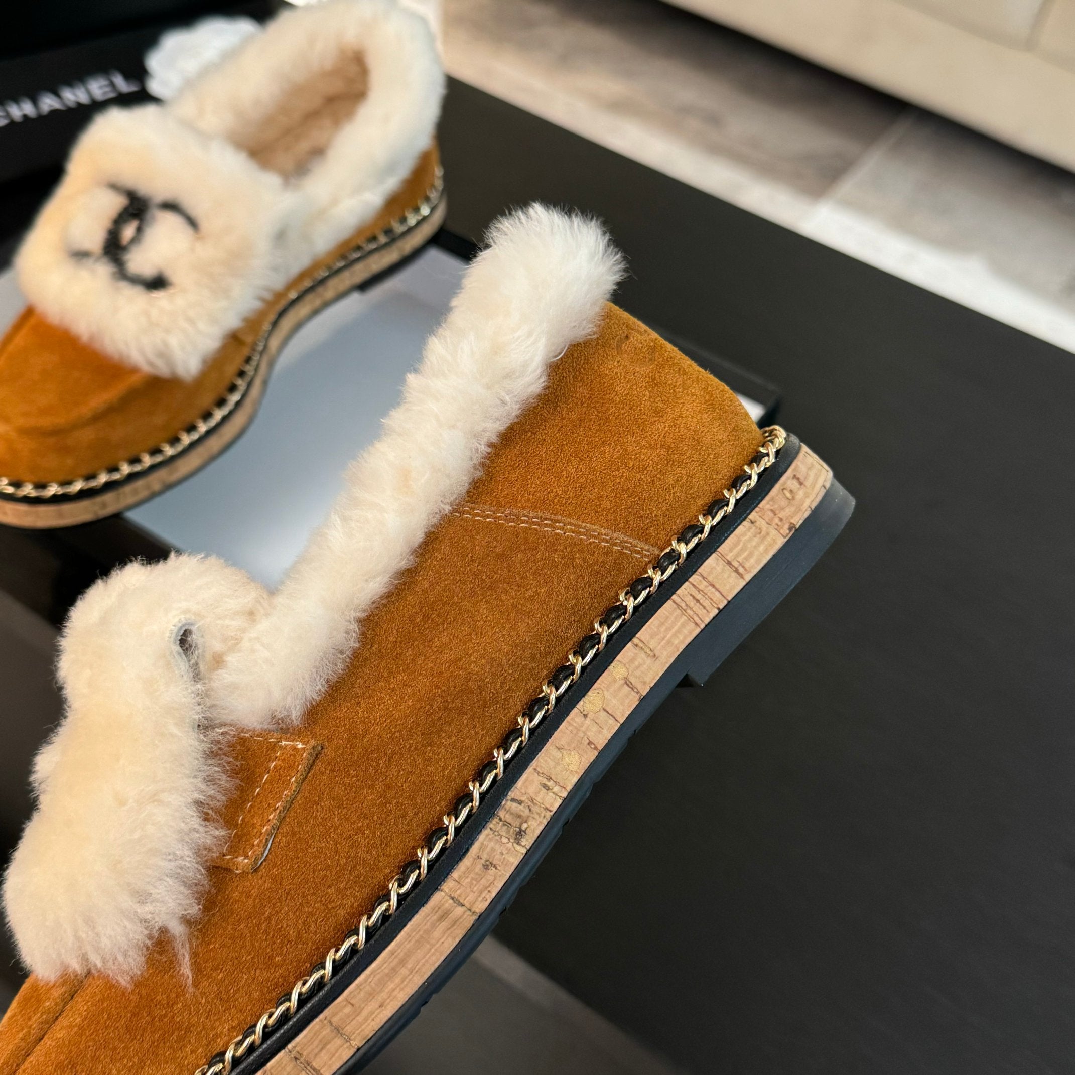 CC Moccasins Yellow Orange Suede And Fleece