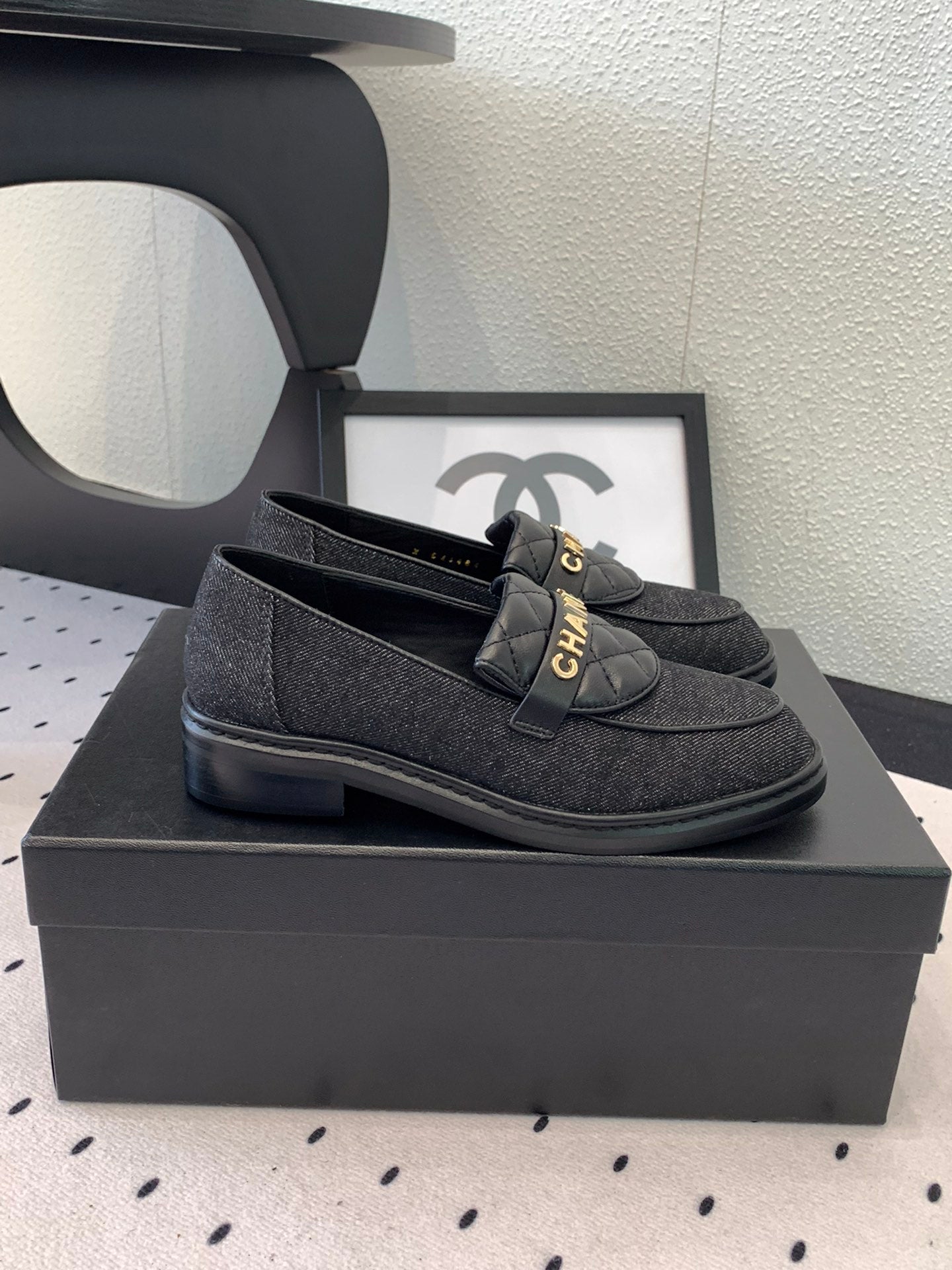 CC Moccasins In Black Denim Fabric 147020