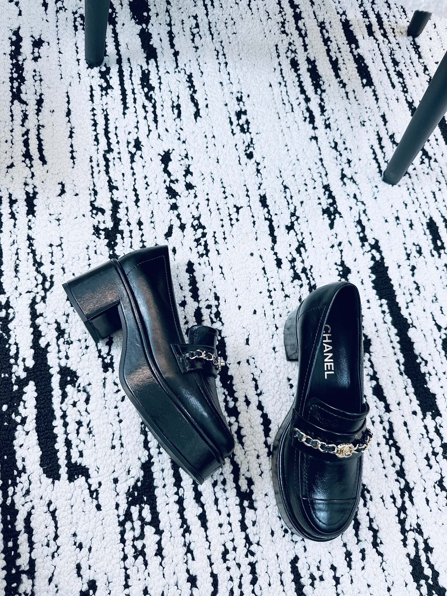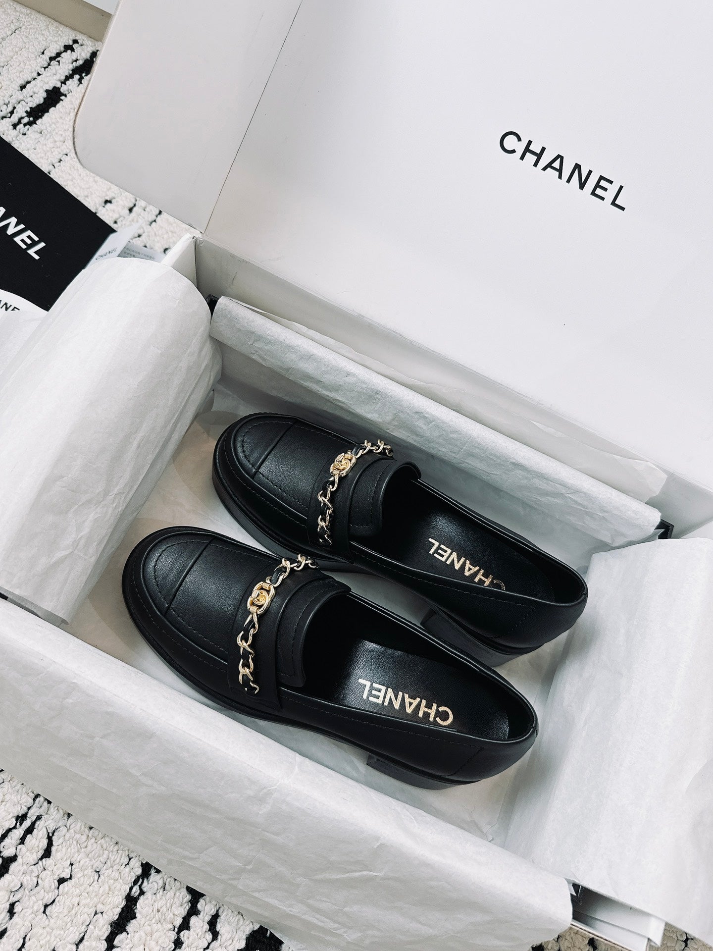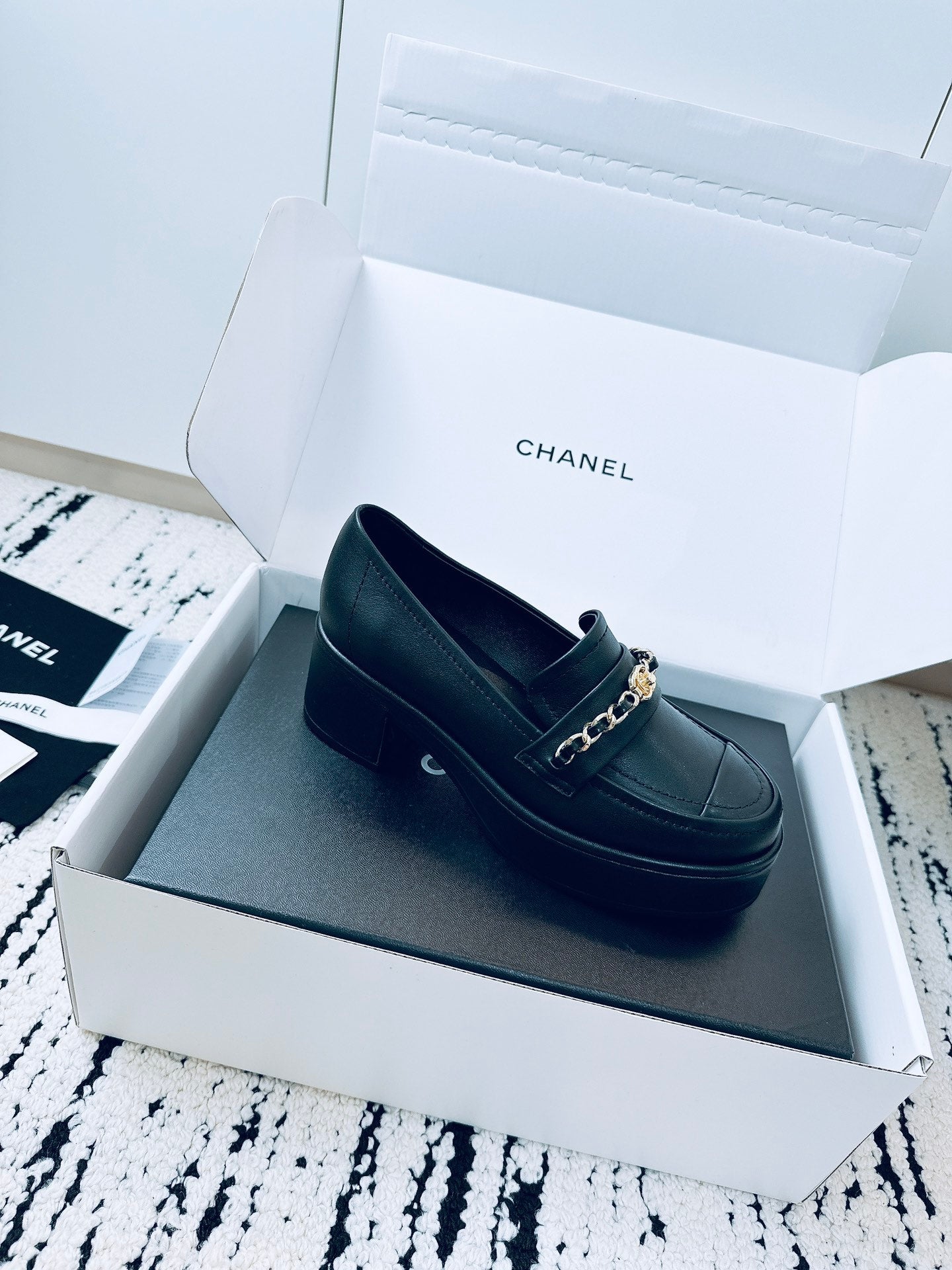 CC Moccasins 55mm In Black Glossy Lambskin With Chain 144477