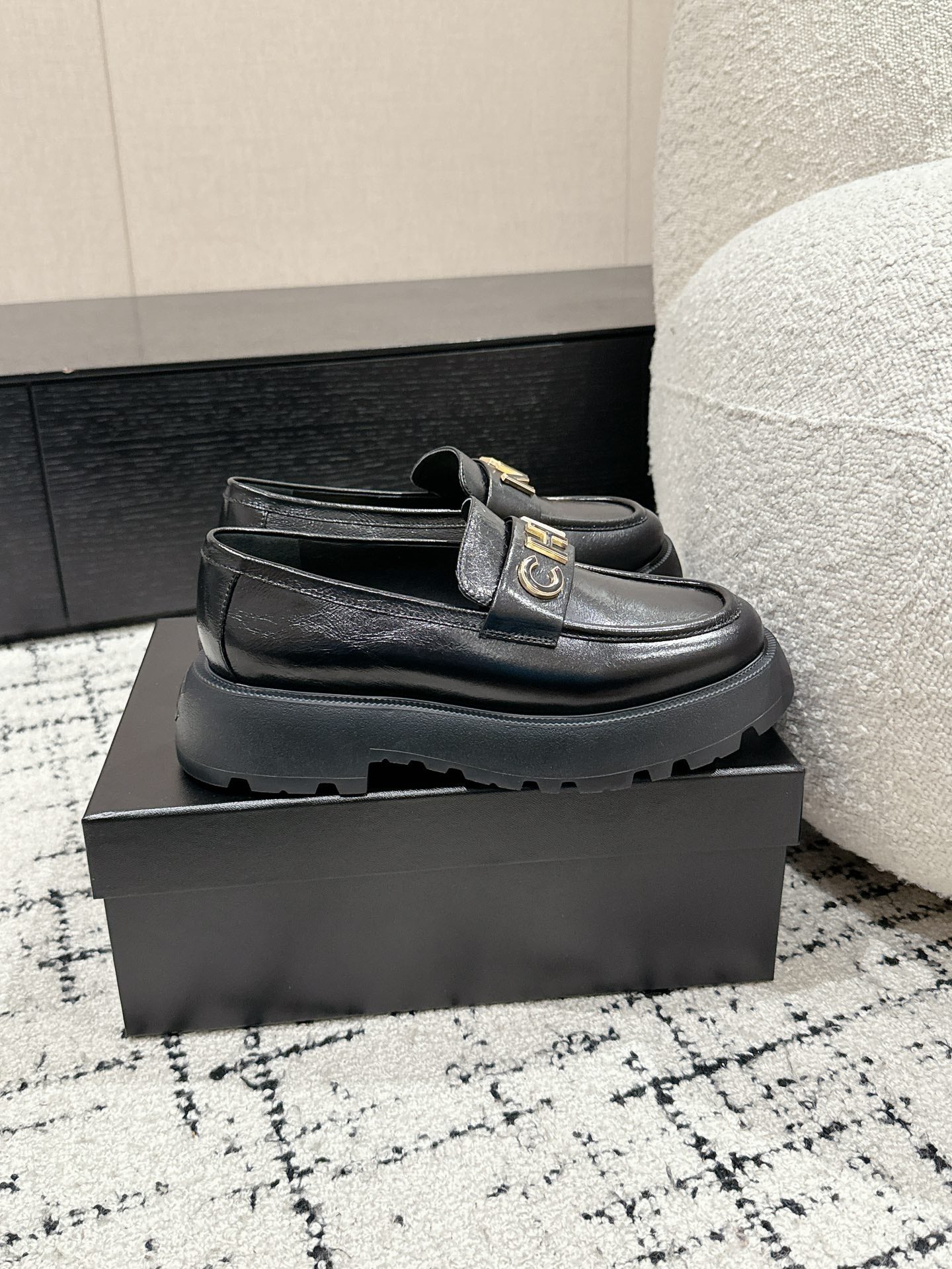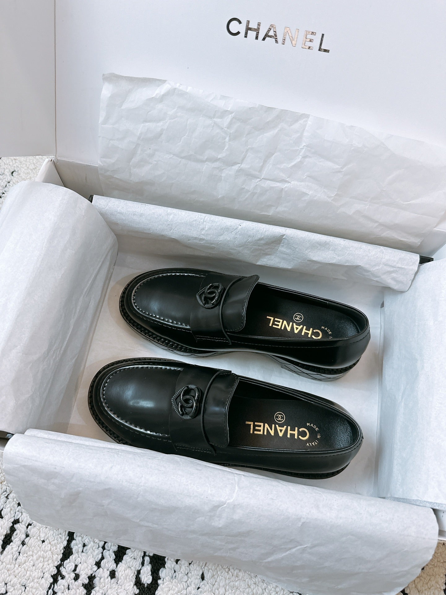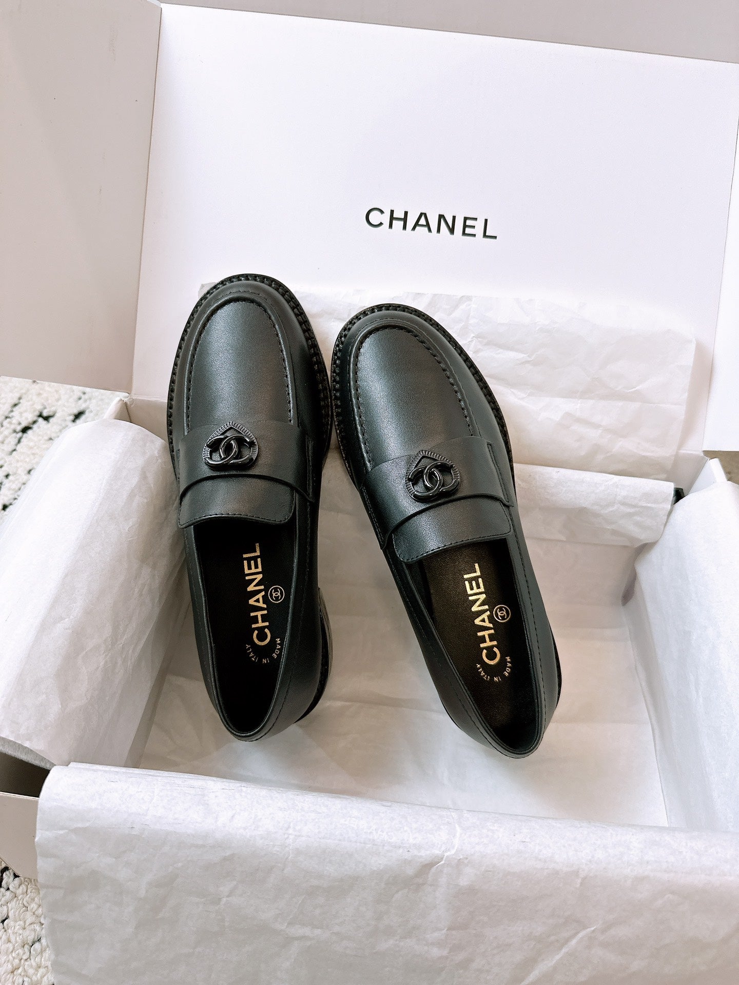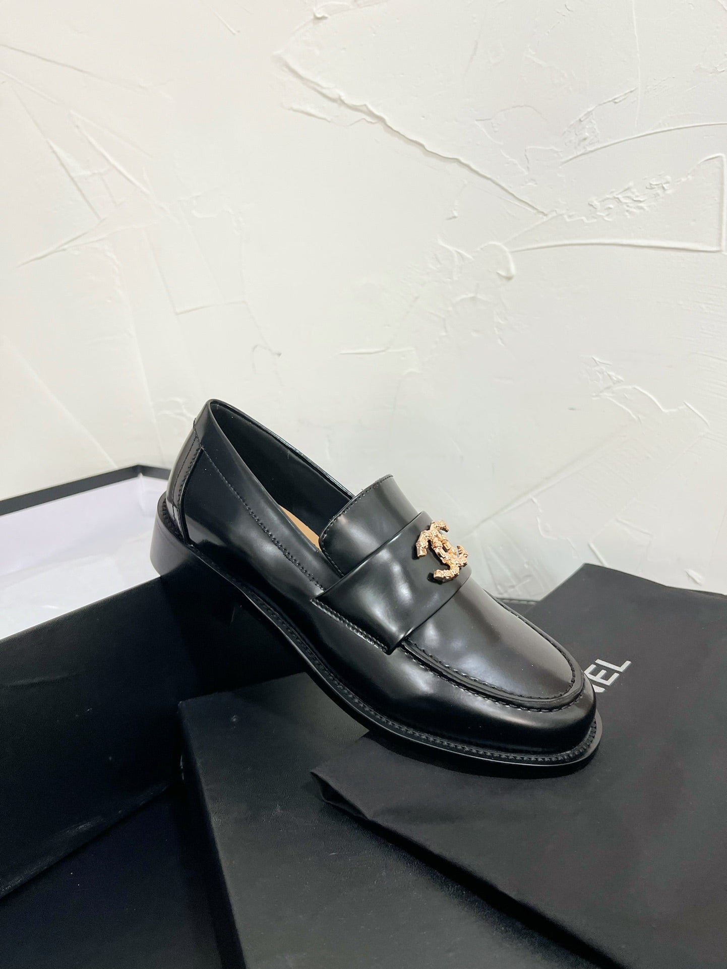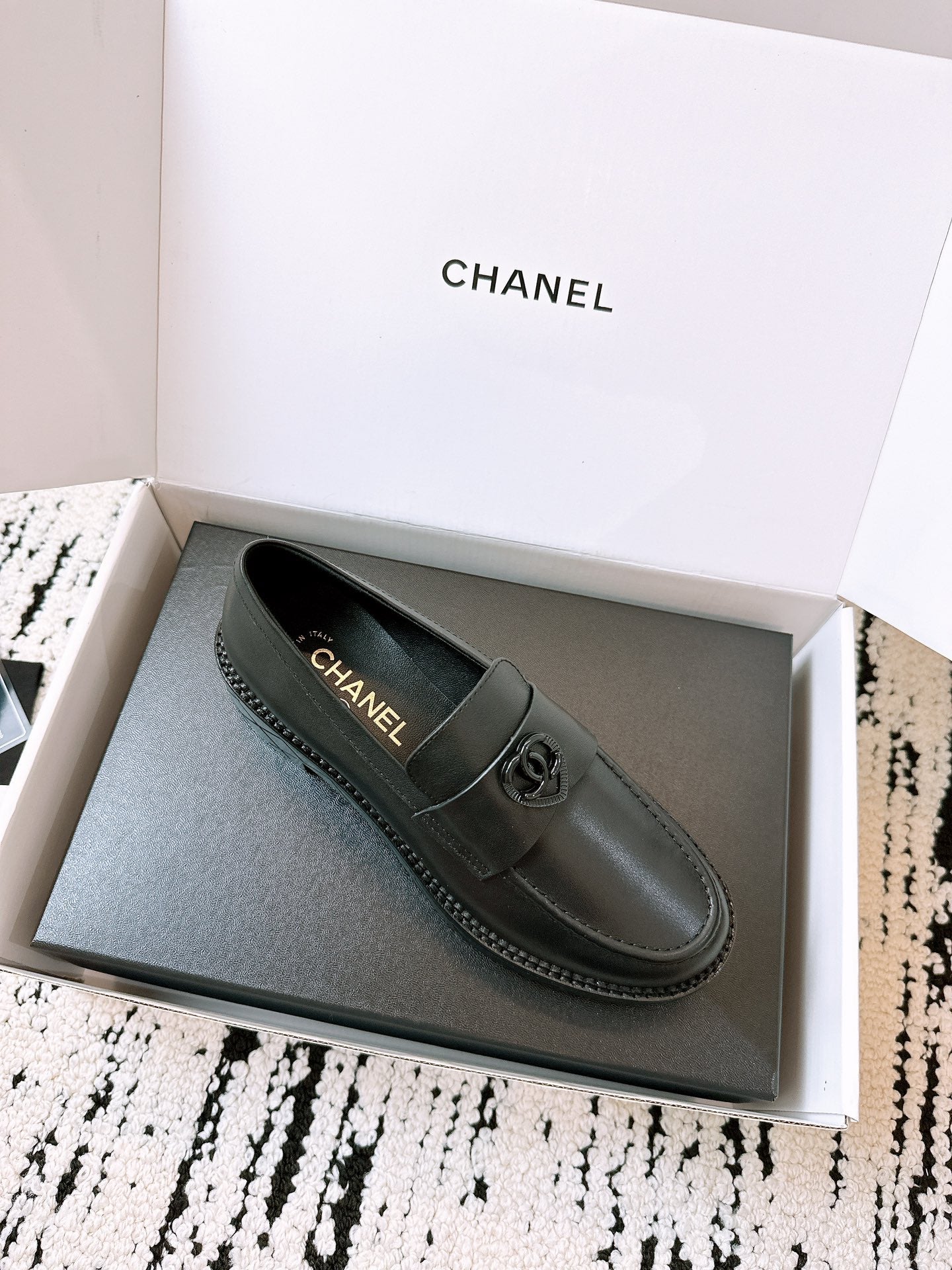 CC Moccasins Glossy Black Calfskin 949655