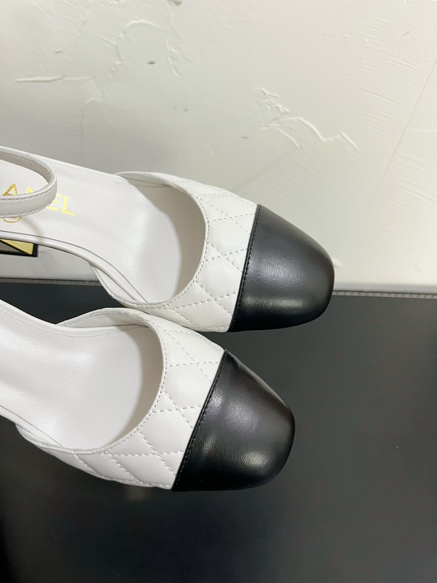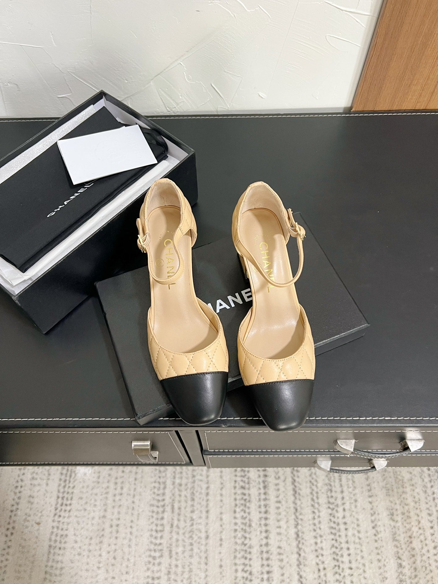 CC Mary Janes 55mm In Beige Mix Black Quilted Lambskin 949764