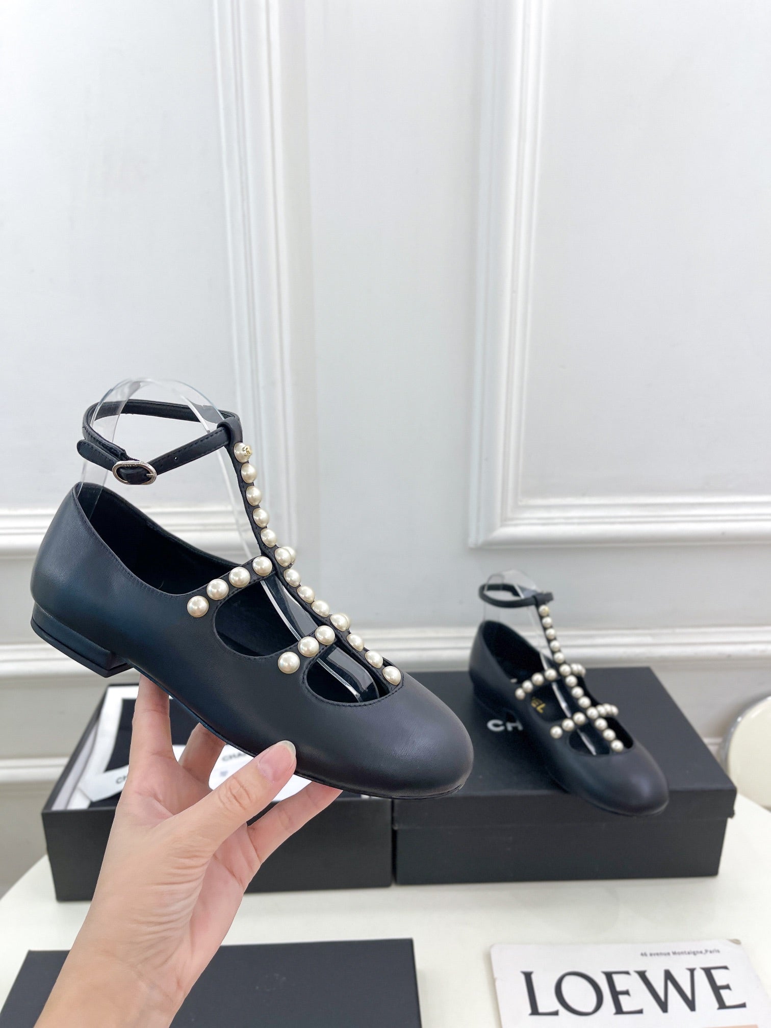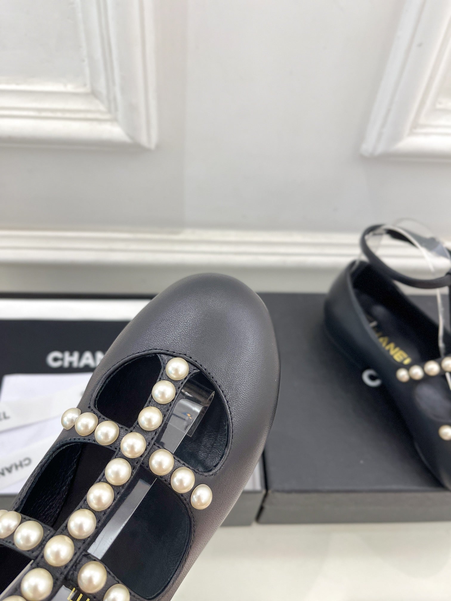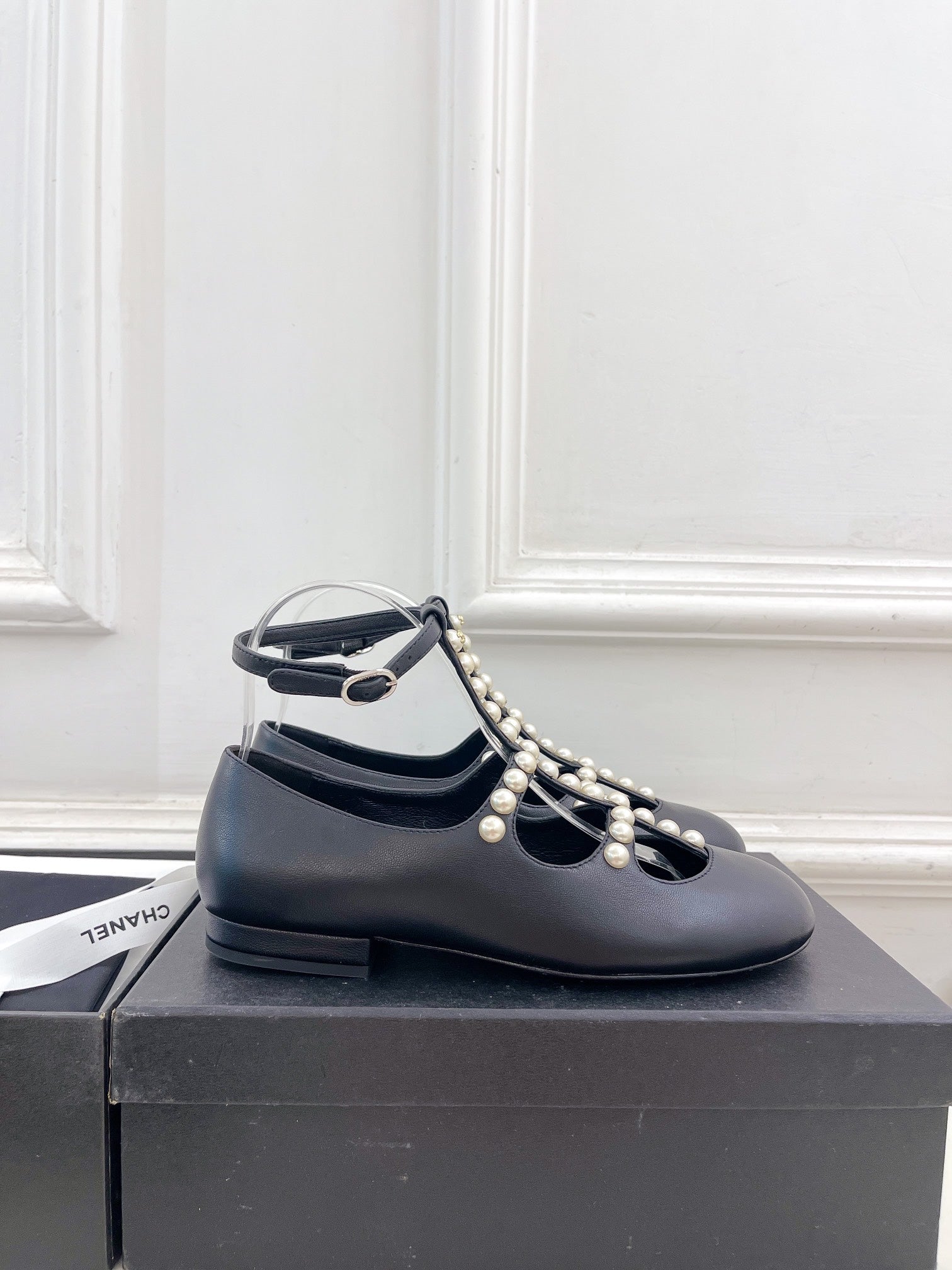 CC Mary Jane 10mm In Black With Small Pearls Lambskin 948756