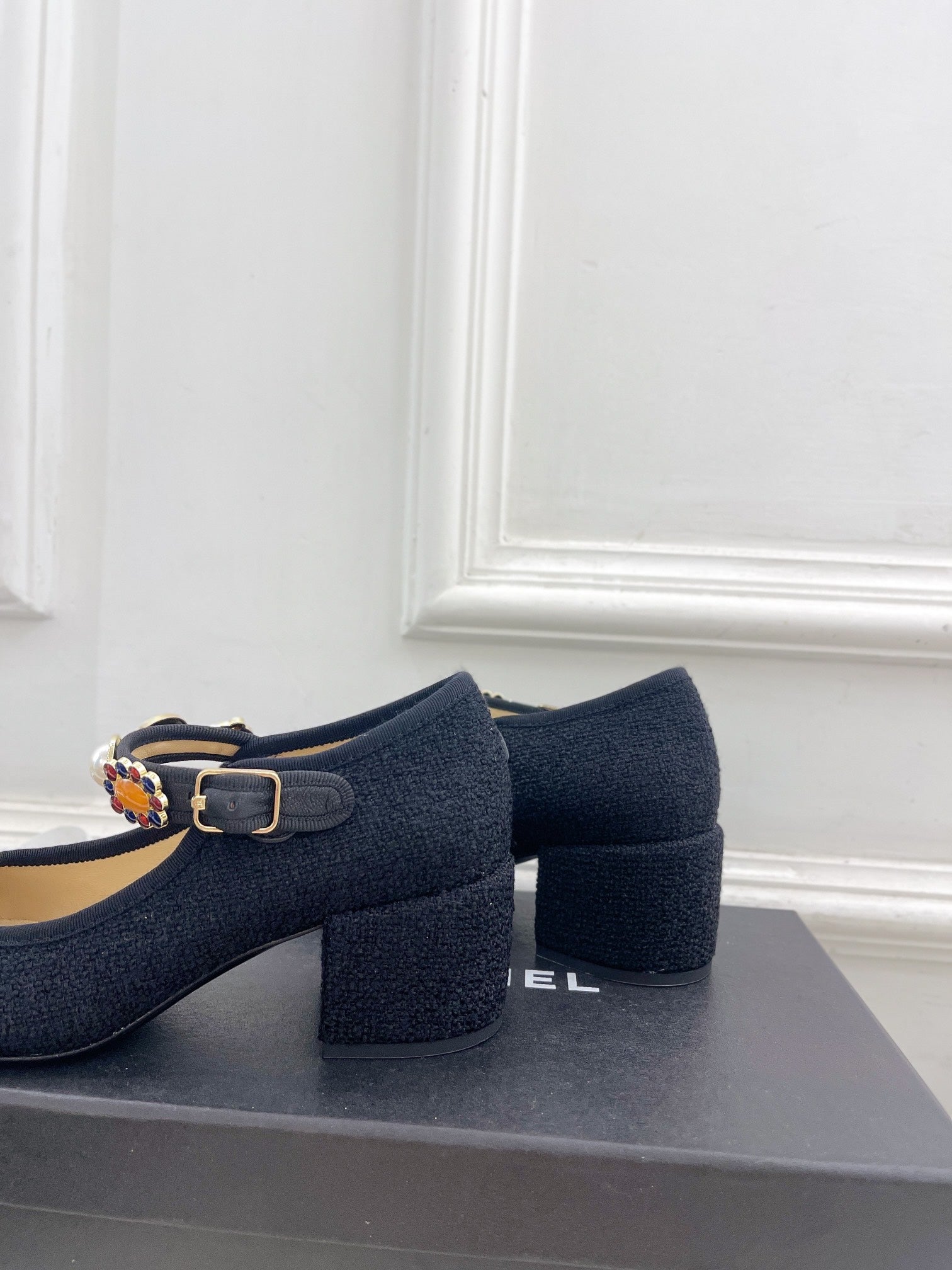 CC High Mary Janes 55mm Black Wool Tweed And Fabric 948815