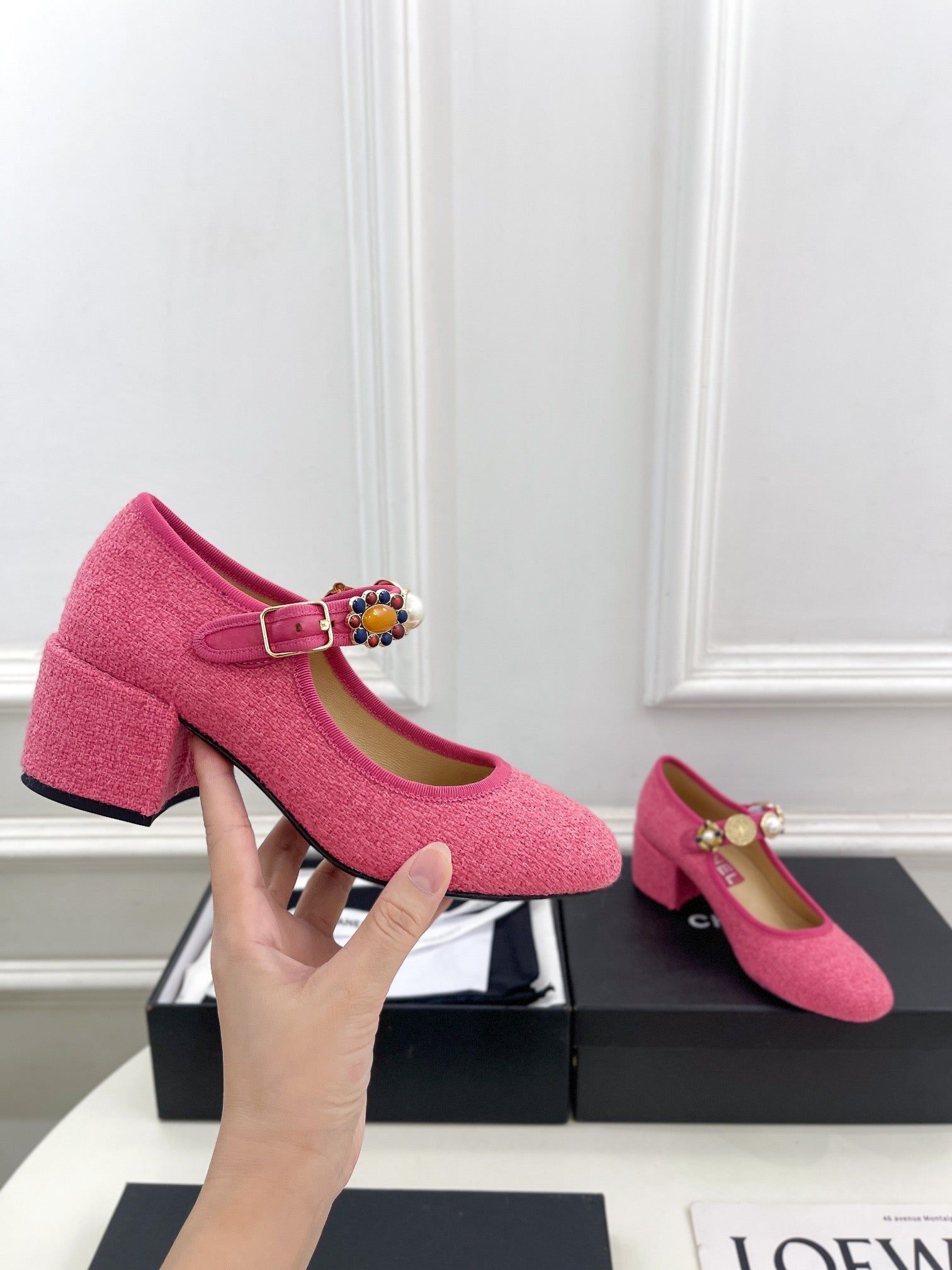 CC High Mary Janes 55mm Dark Pink Wool Tweed And Fabric 948817