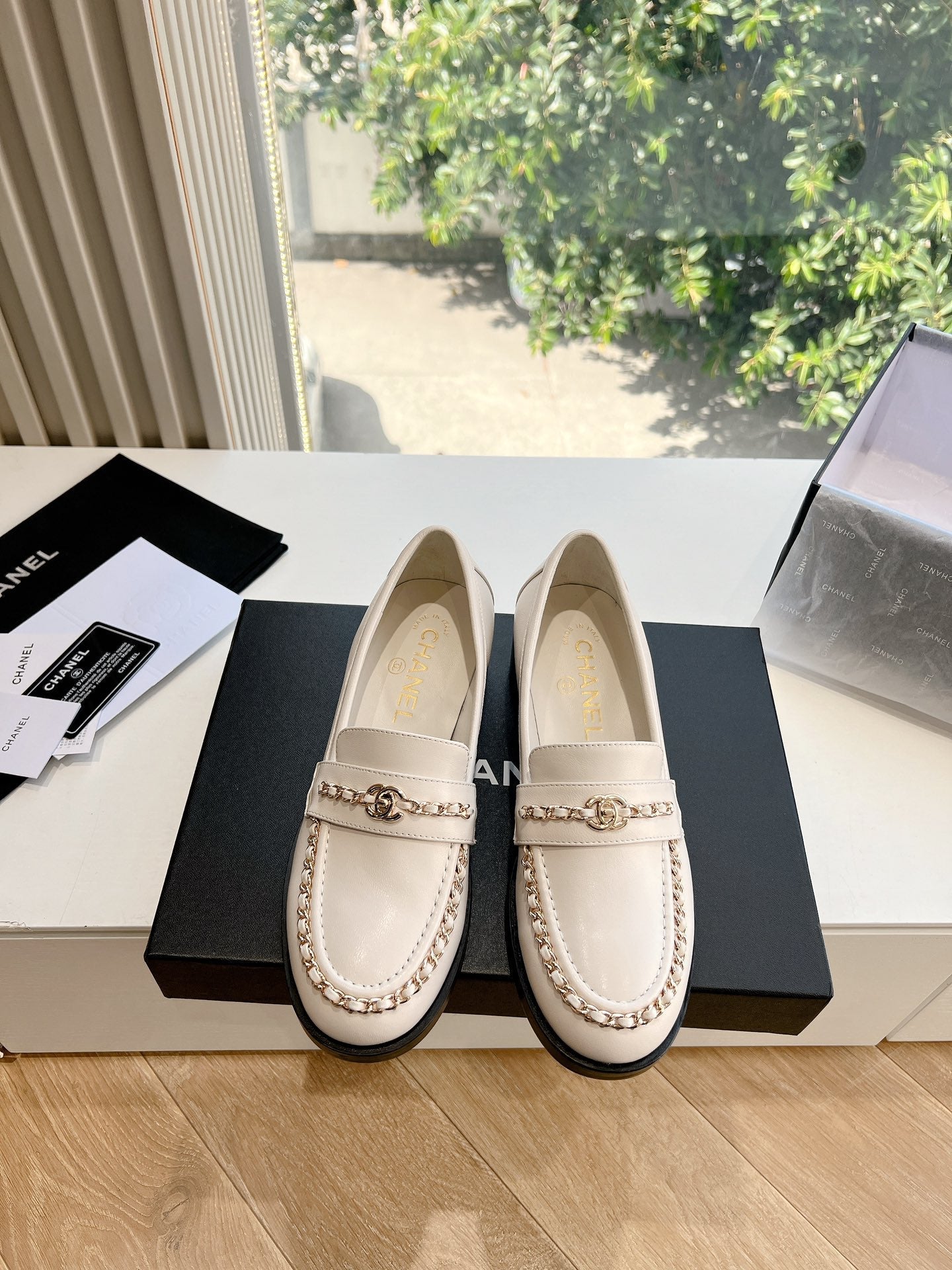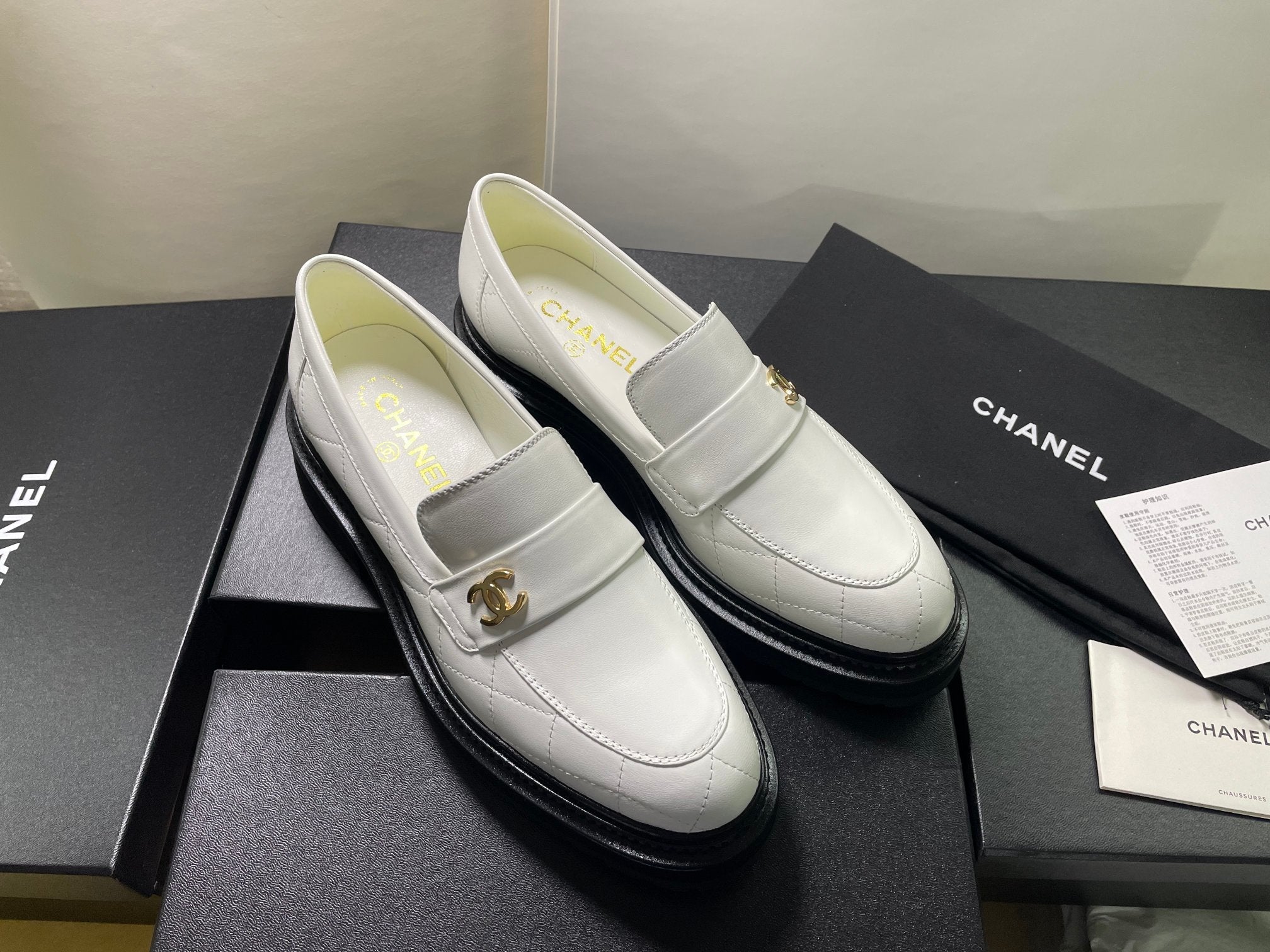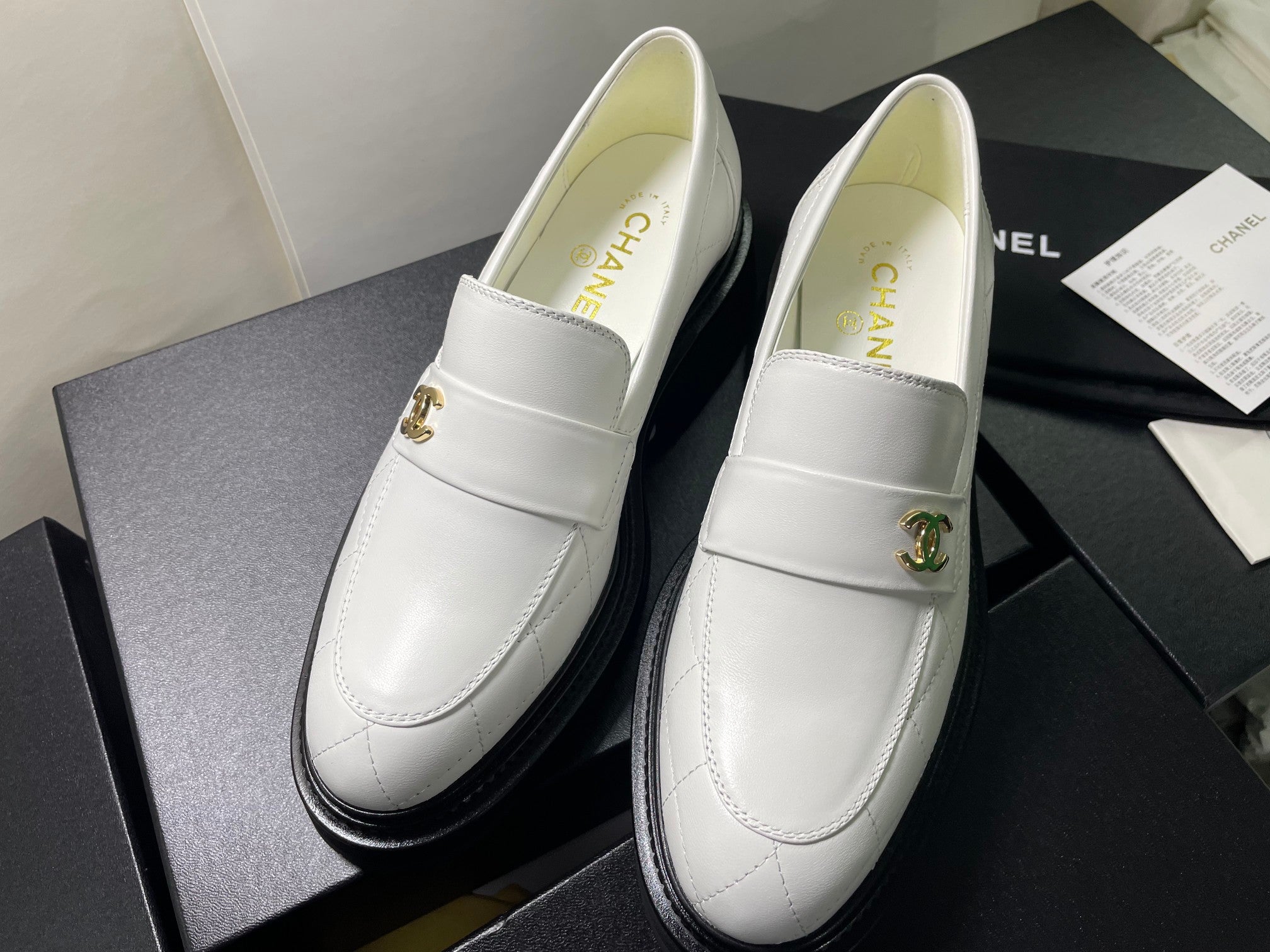CC LOAFERS IN WHITE FLEECE WITH BLACK LOGO