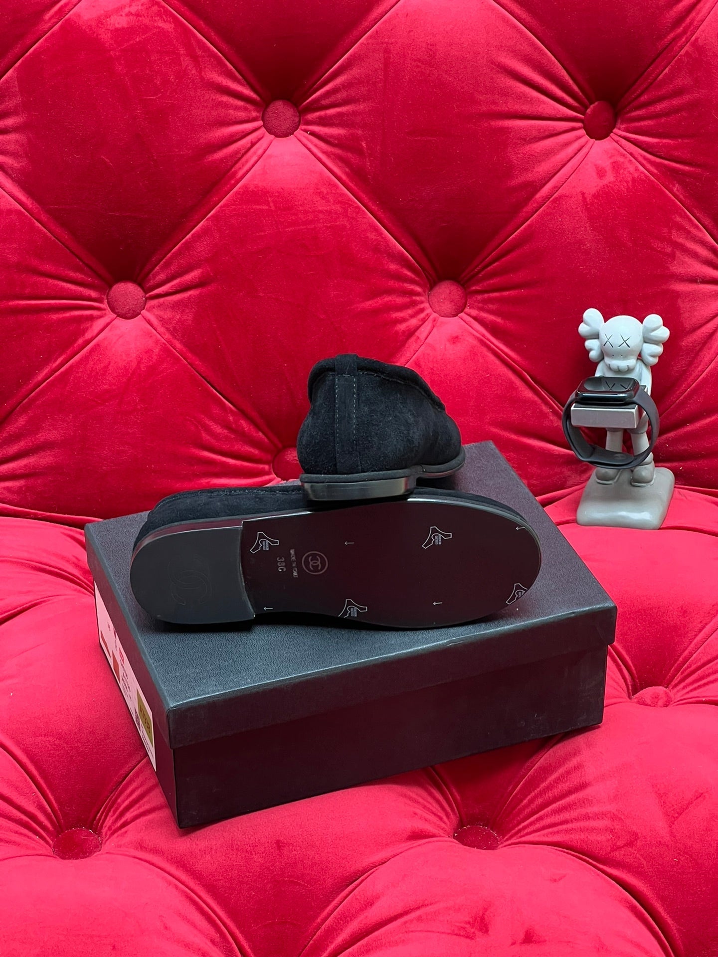 CC LOAFERS IN BLACK FLEECE WITH WHITE LOGO