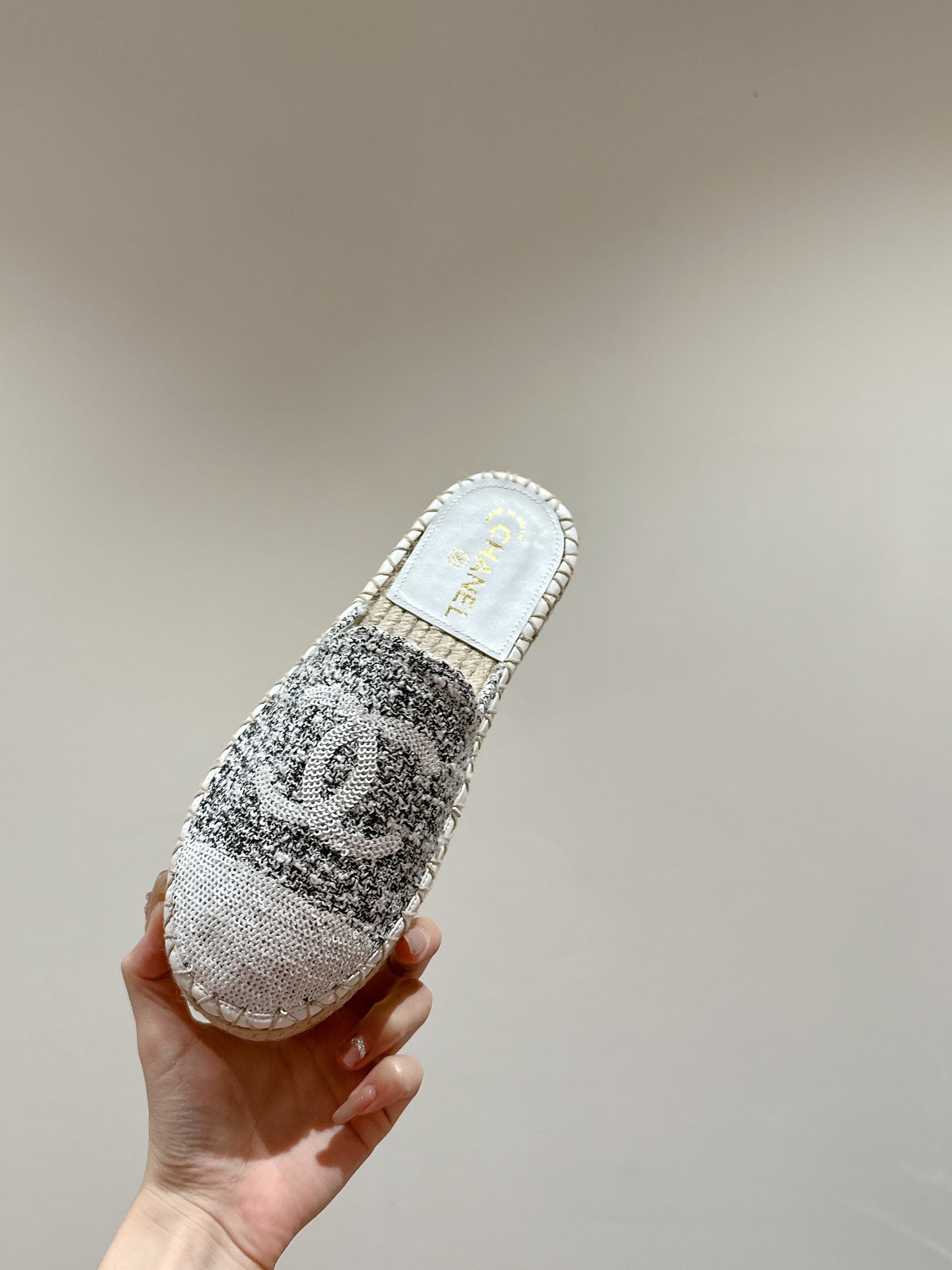 espadrilles grey tweed white calfskin