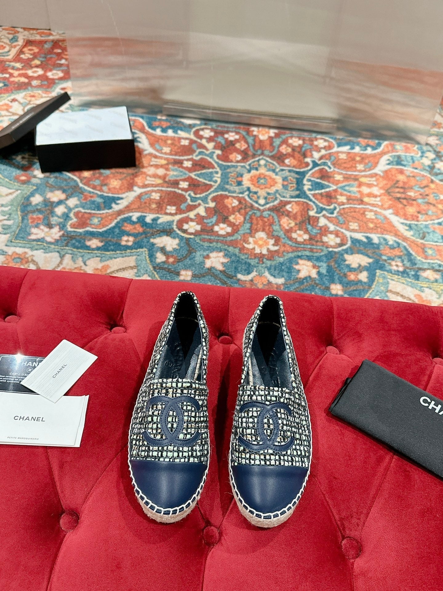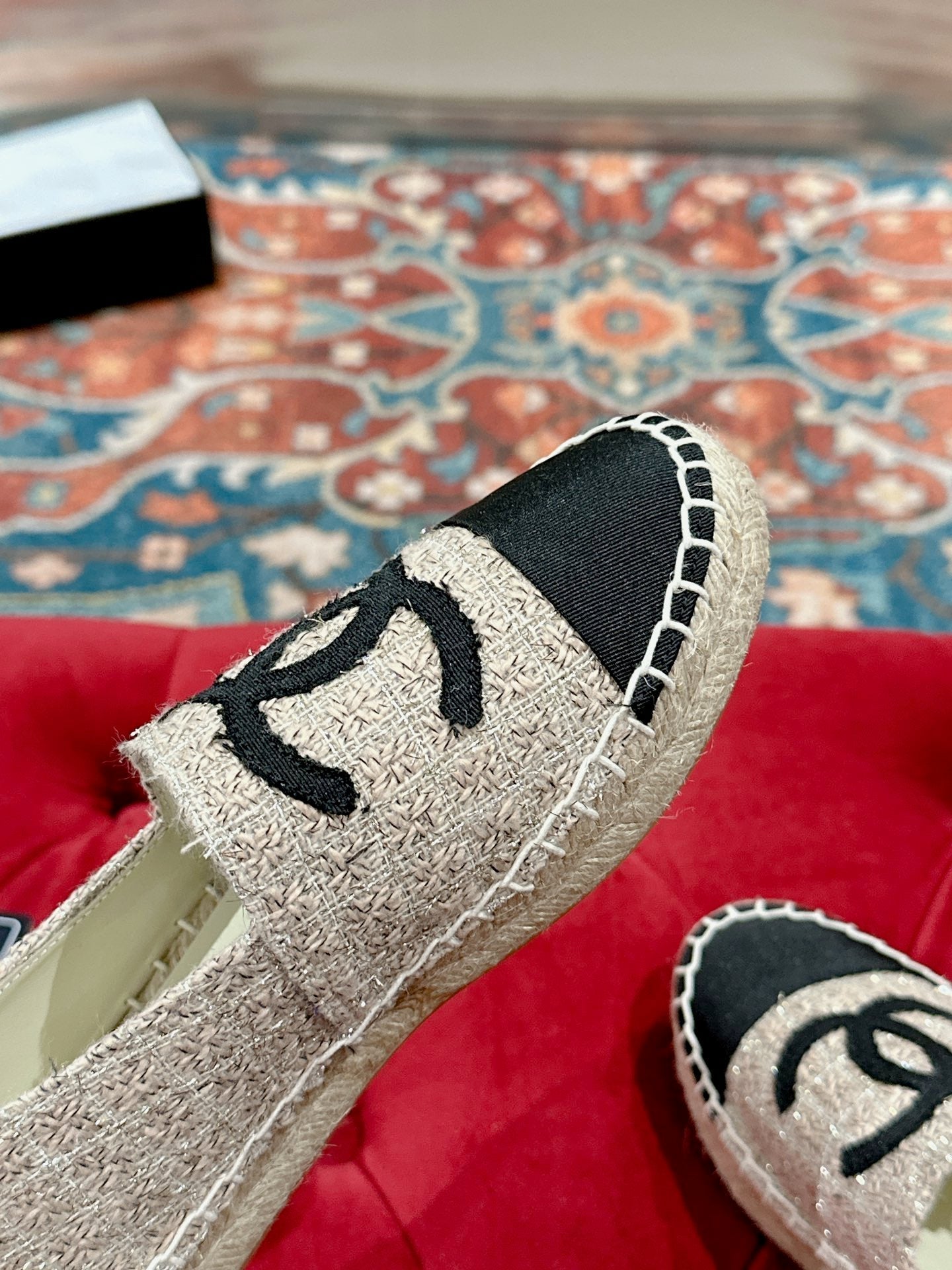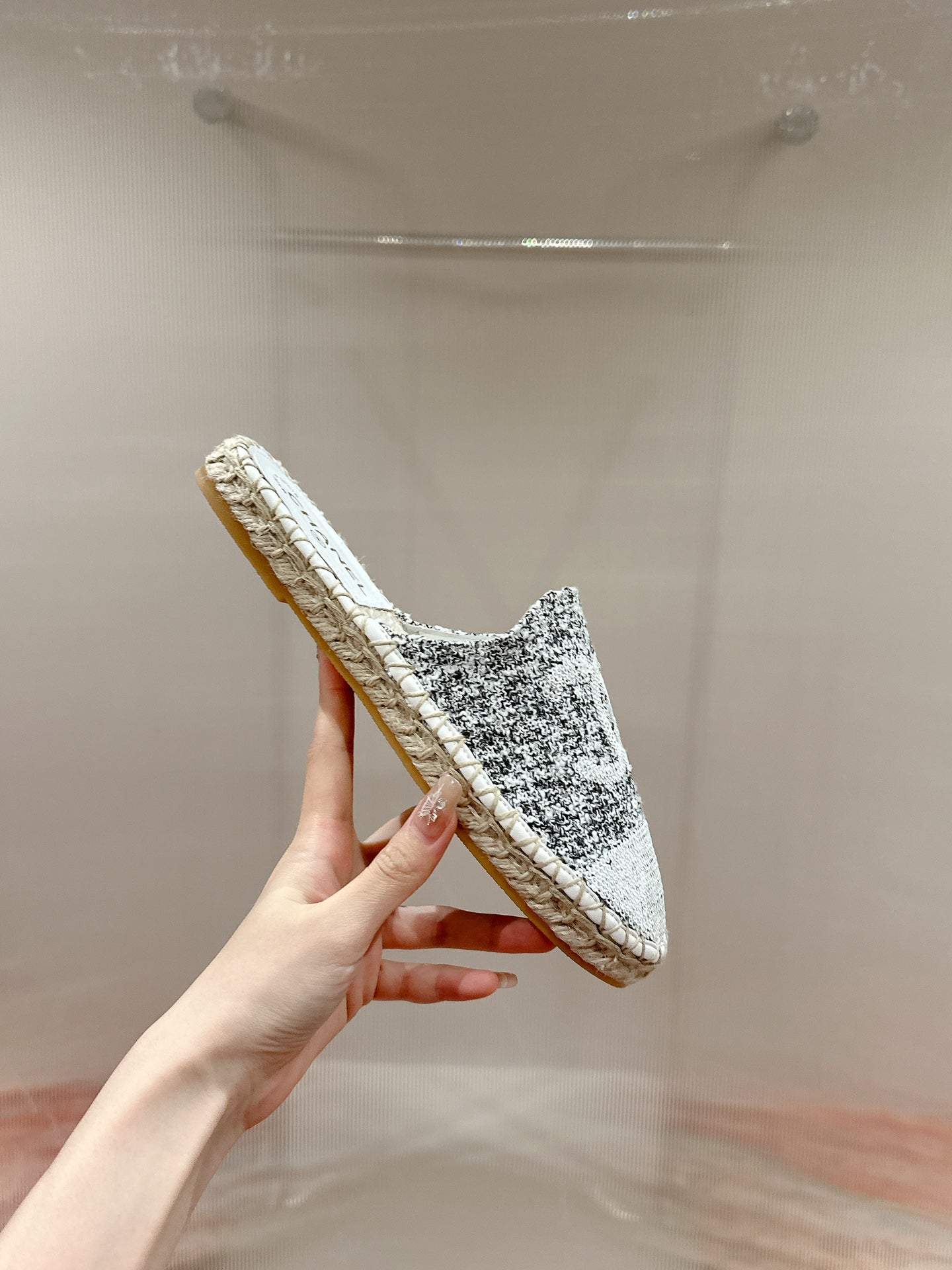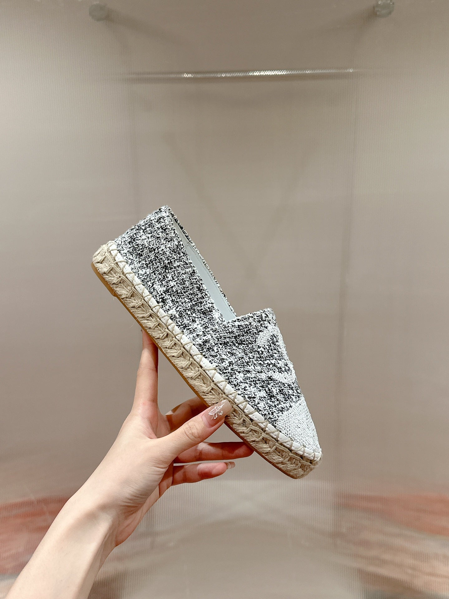 espadriles black white tweed black lambskin