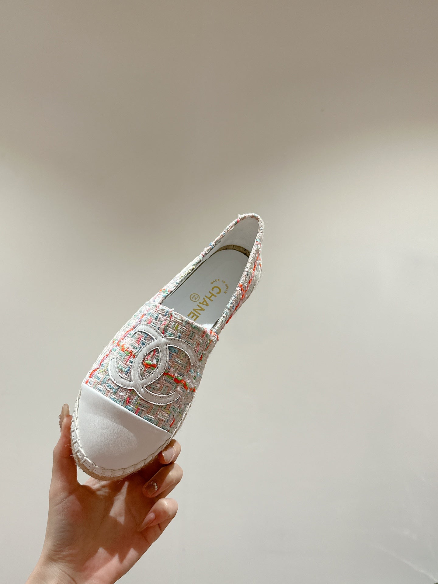 espadrilles white tweed black canvas