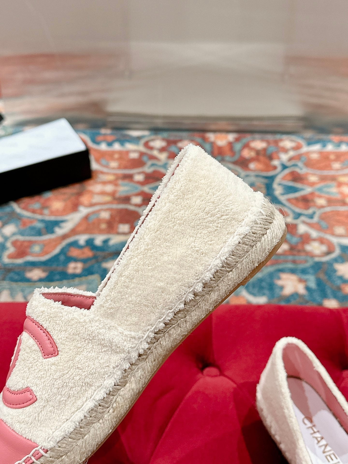 cc espadrilles beige fleece fabric pink calfskin