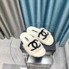 CC Slippers White Black Text Fleece Wool