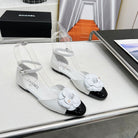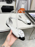 mule sandal flower wedge heel white black calfskin