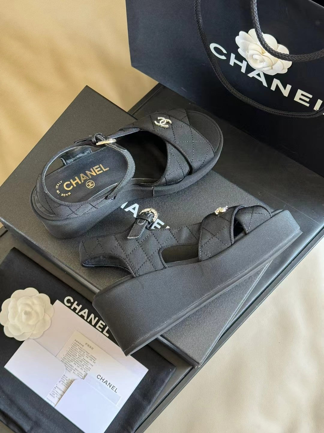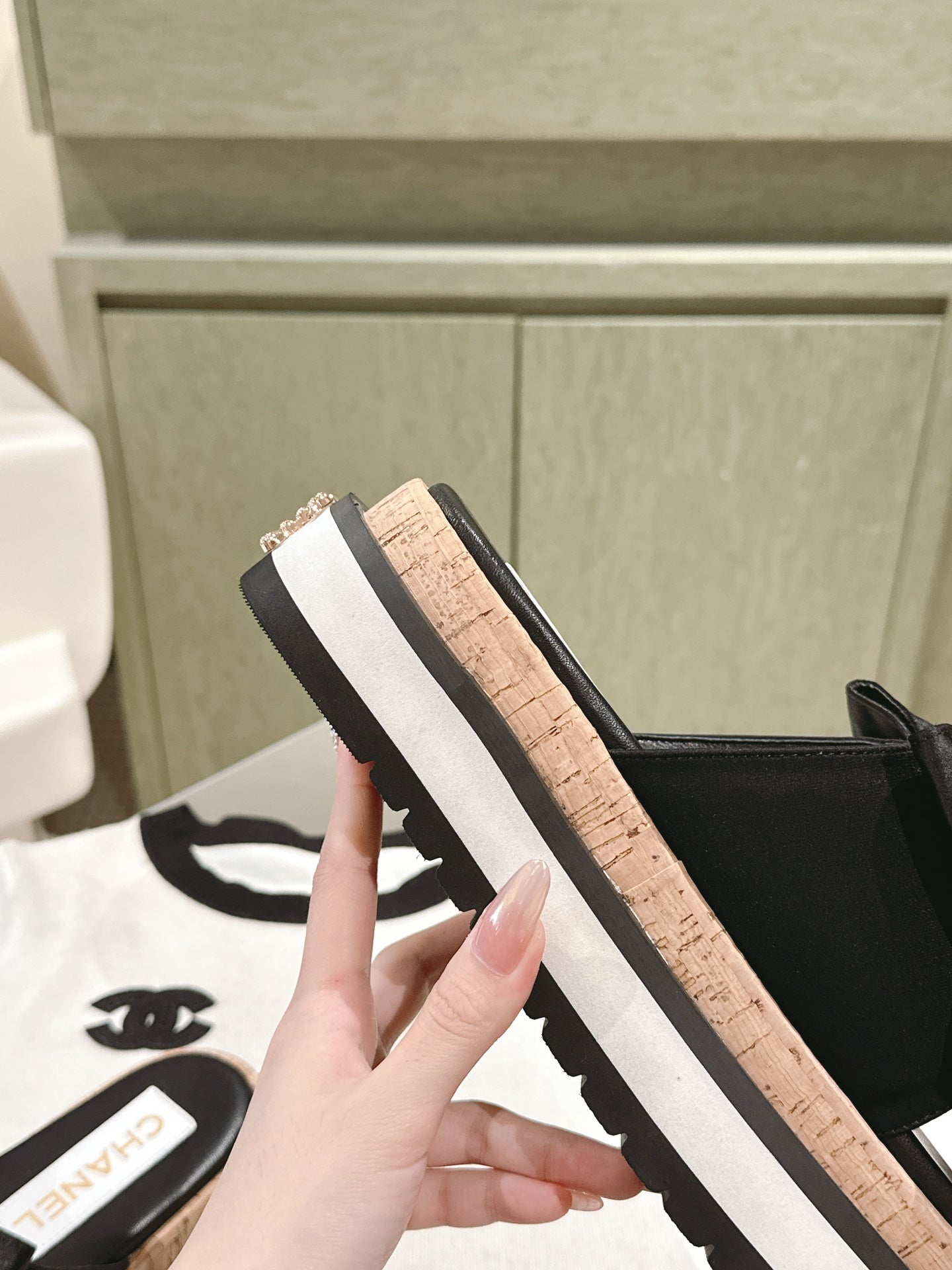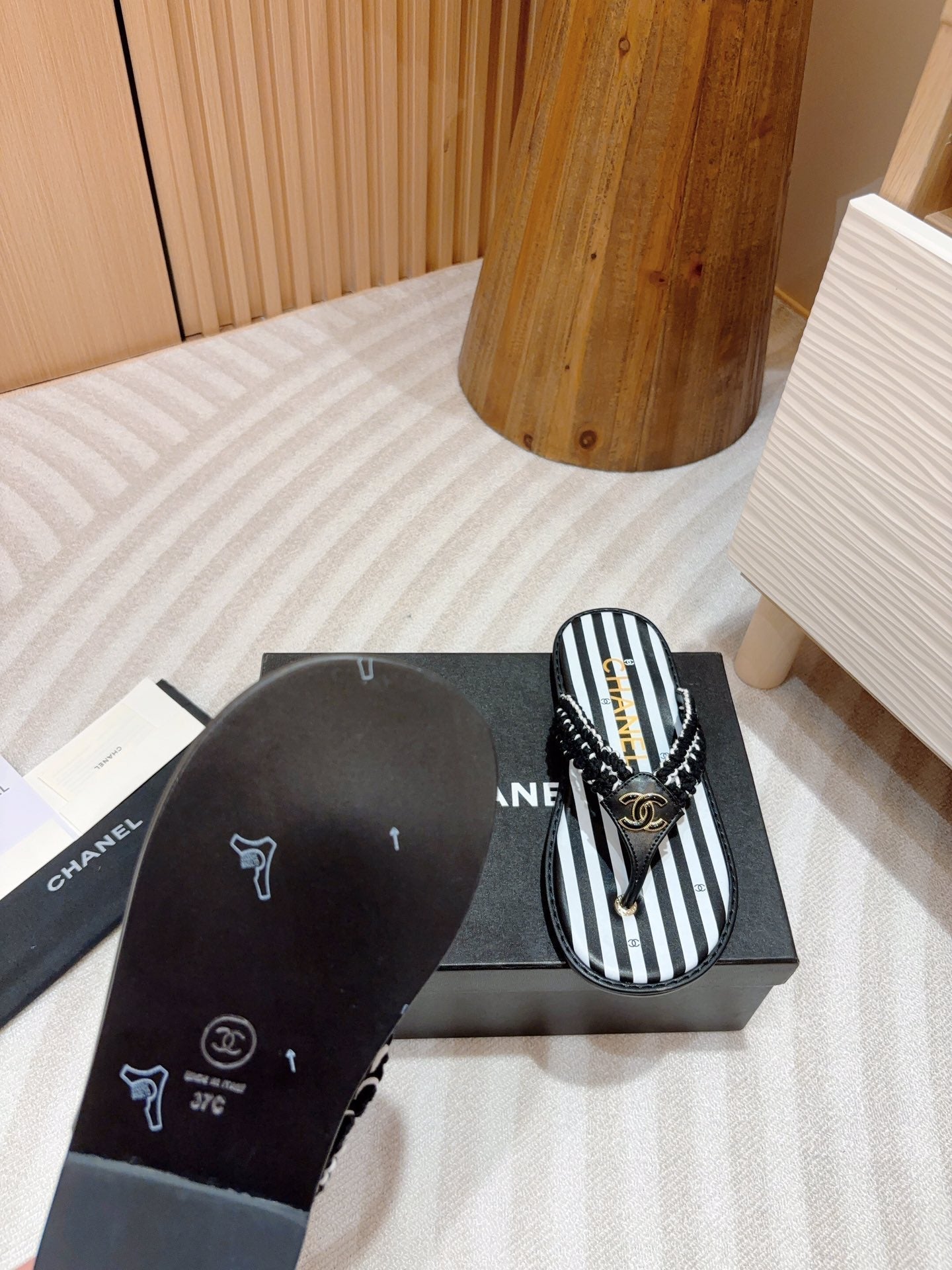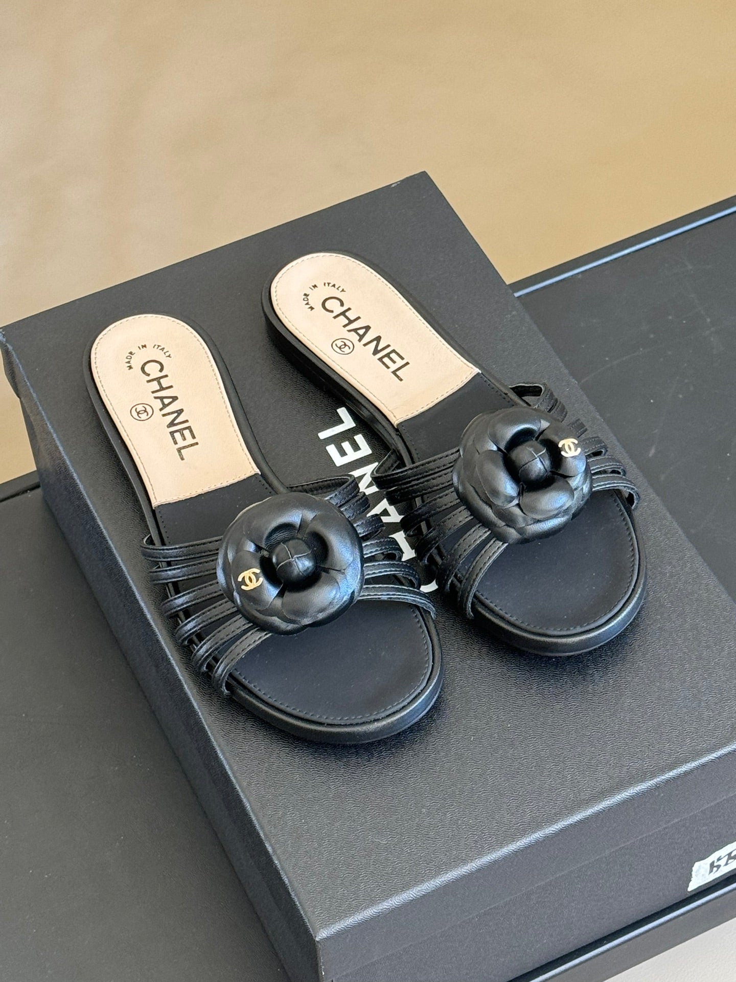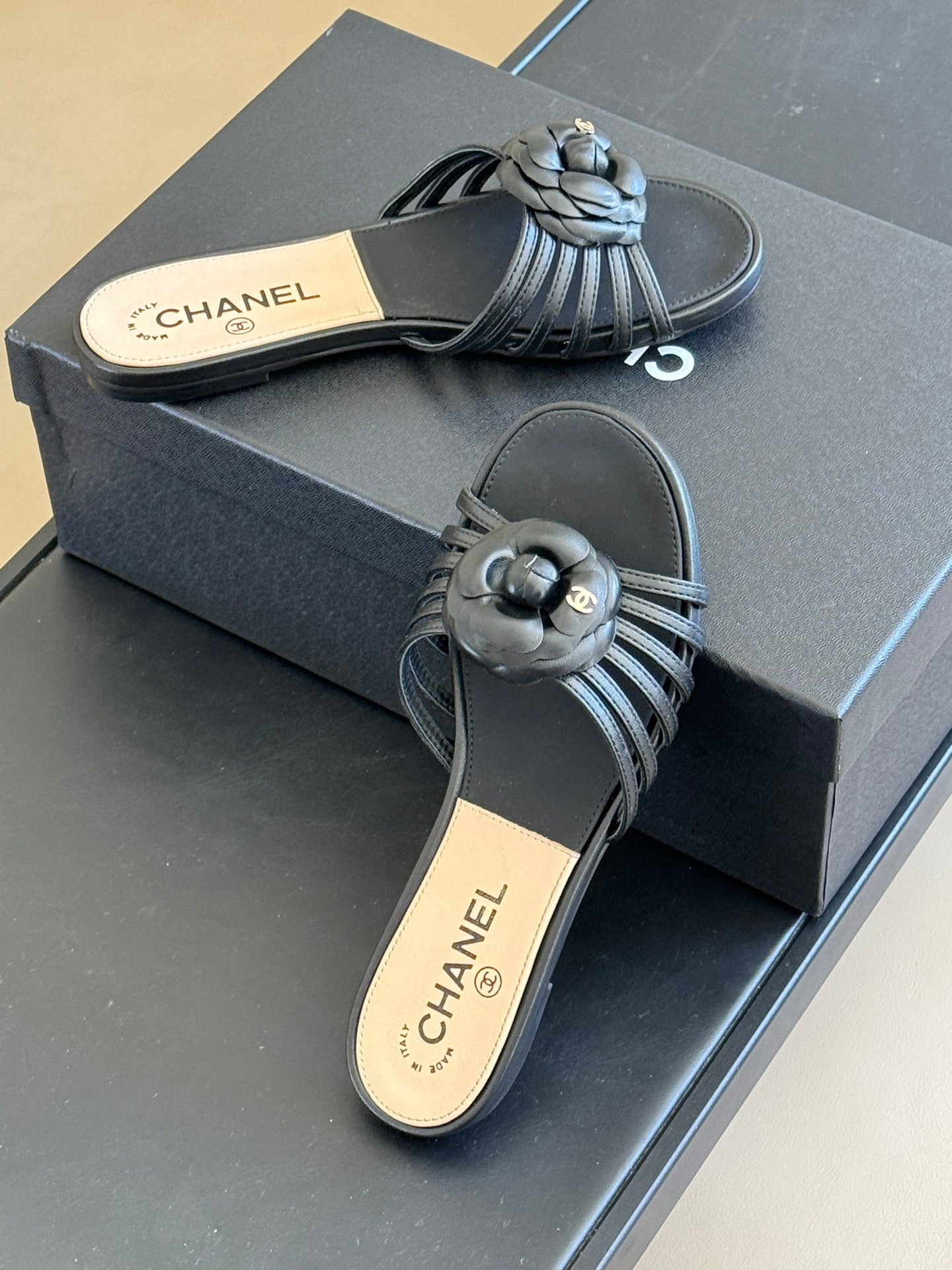 CC 25 Flip Flop Sandals Black Calfskin Espadrilles